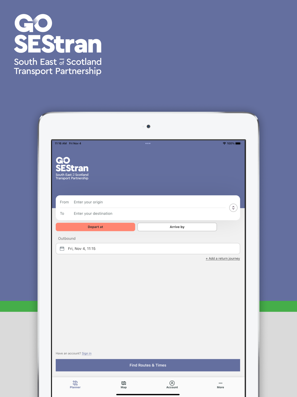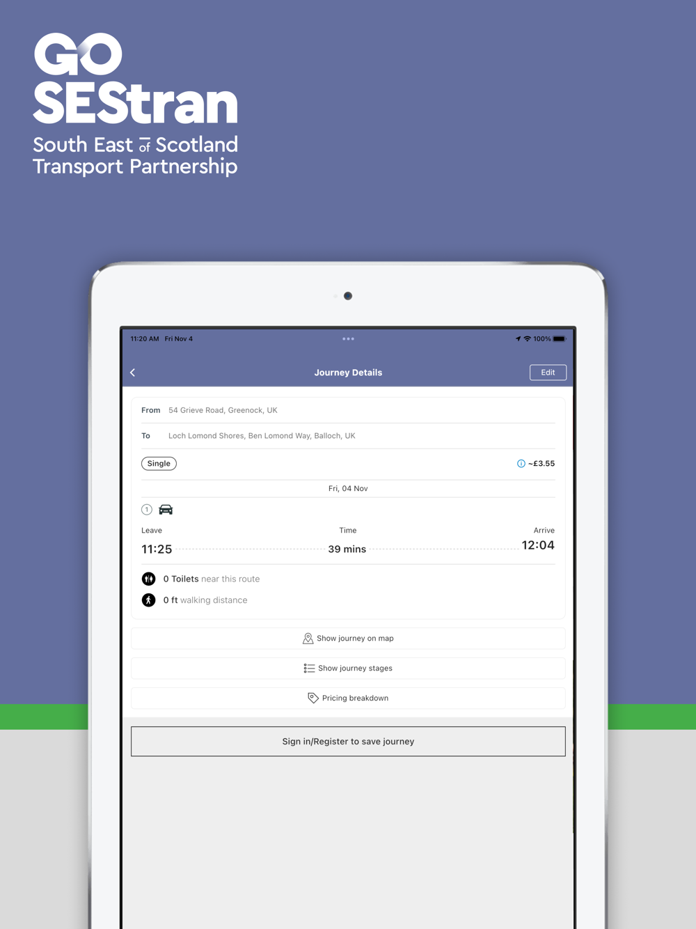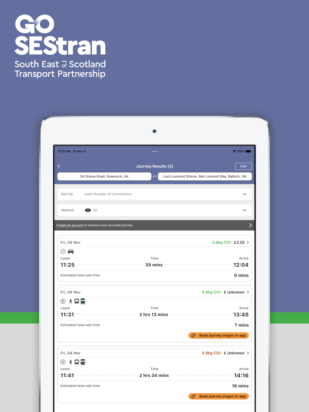 Compare prices and routes then book and pay for your travel by bus, rail, taxi, Demand Responsive Transport (DRT), car, bike hire, car club, cycling, walking or a combination of these.