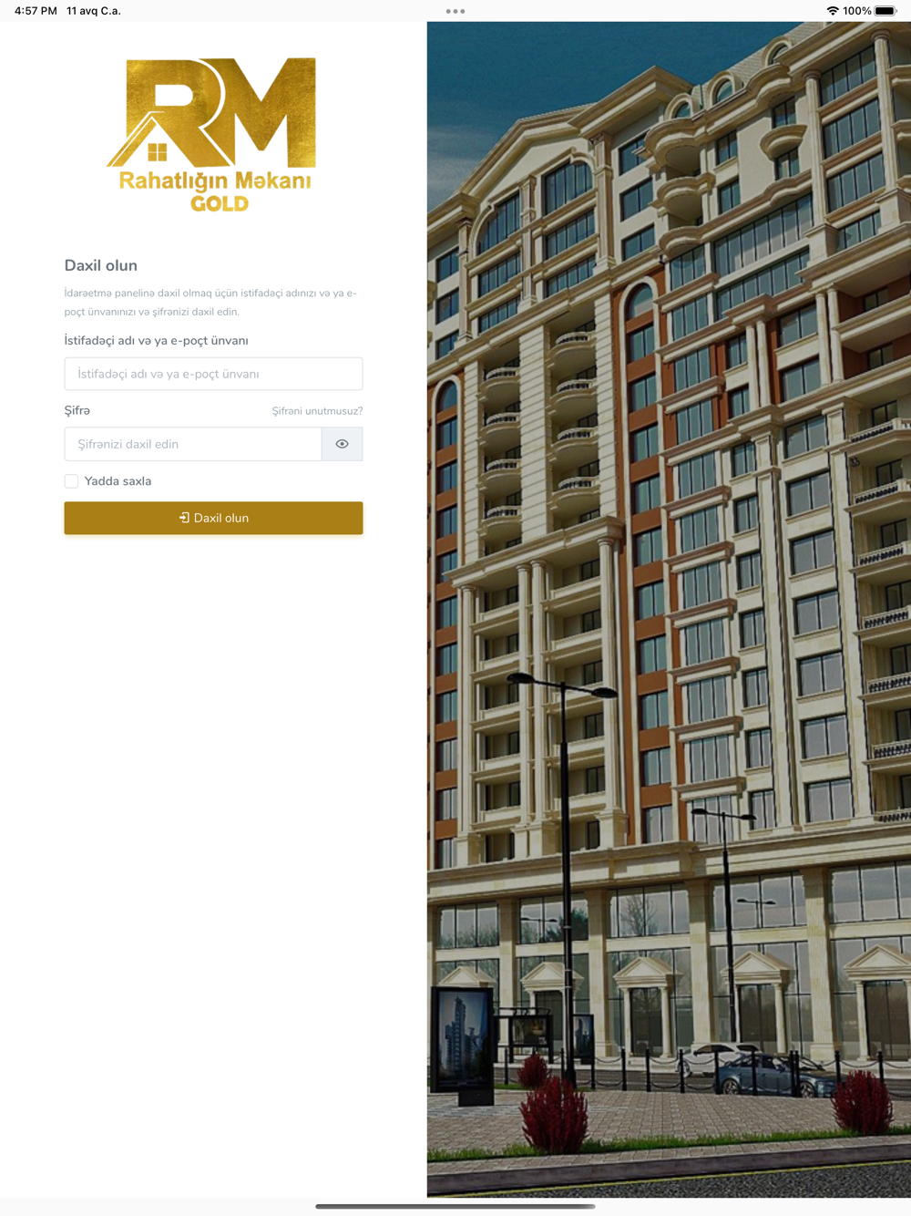RahatBina.az layihəsinə integrasiya olunmuş RM GOLD mənzillərin aylıq xidmət haqlarının ödənişlərini etmək və yaşayış binasının idarə olunması üzrə onlayn platformadır.