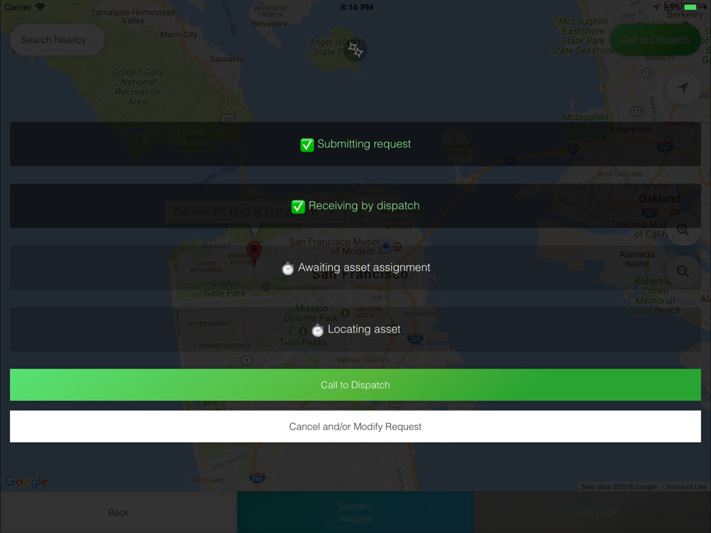 In a scene call setting, first responders will be notified of the steps taken by the TAME communication center as the request is evaluated and an aircraft is assigned. Upon the launch of an aircraft, the user will be able to track its progress via a real-time map feature.