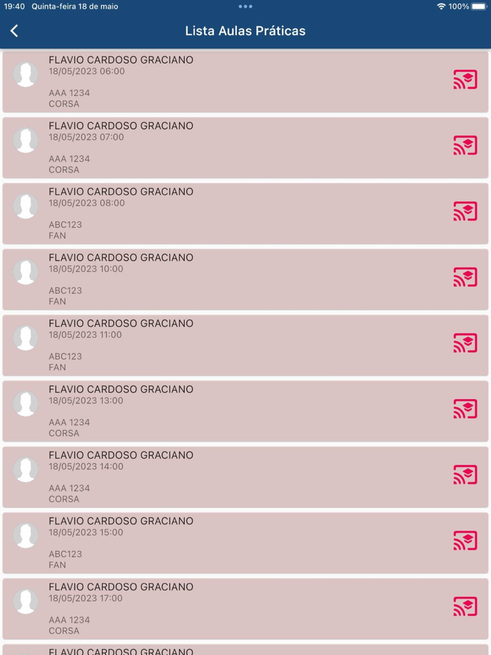 O instrutor(a) tem acesso a toda sua grade de aulas práticas, teóricas e exames práticos do dia, lançados no software InoveCFC.