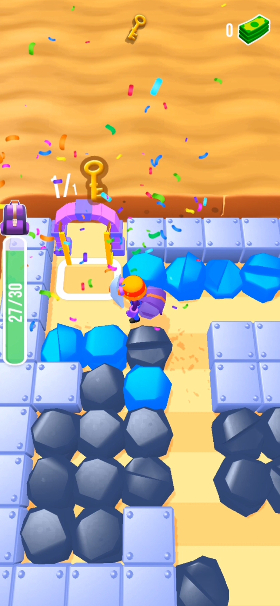 The stones that you break with a pickaxe fold into a shoulder bag. Don't forget to sell it, for the money that you get you will be able to upgrade your pickaxe, speed, and capacity of the shoulder bag.