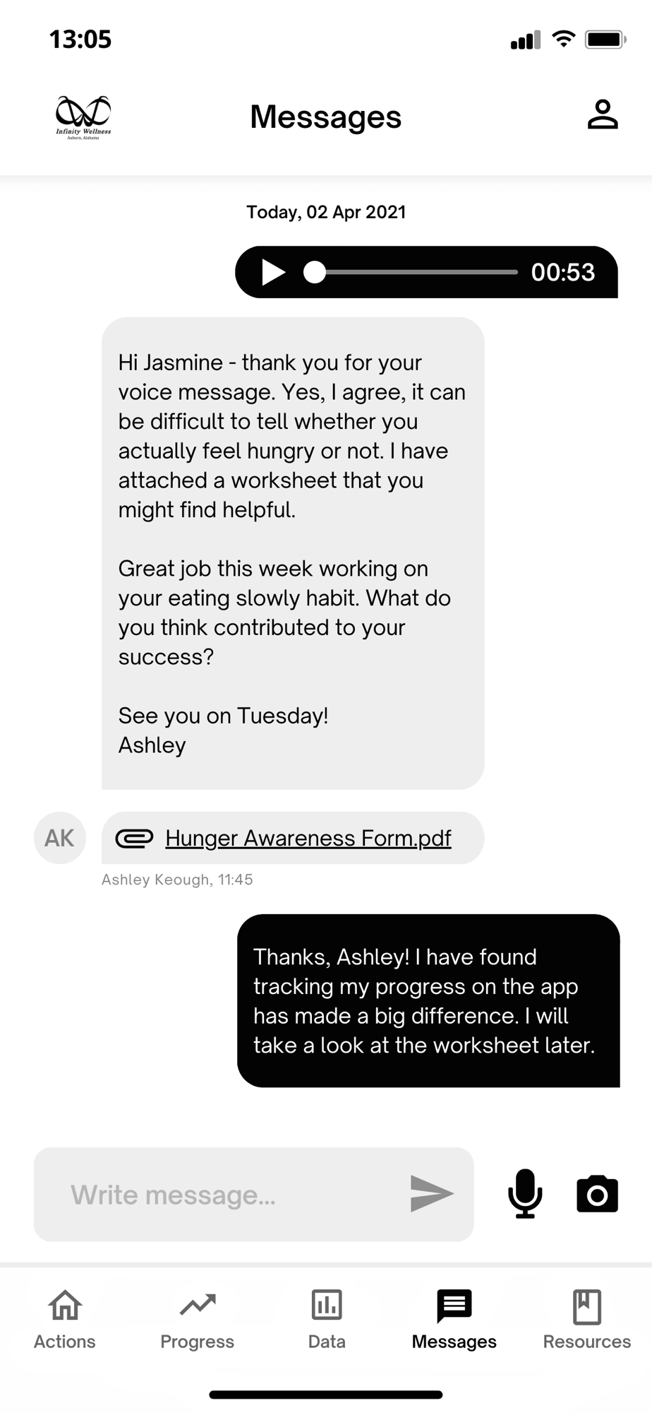 The Infinity Wellness app allows access to HealthKit, allowing clients to automatically pull in their activity and steps data from Apple Health to their app.