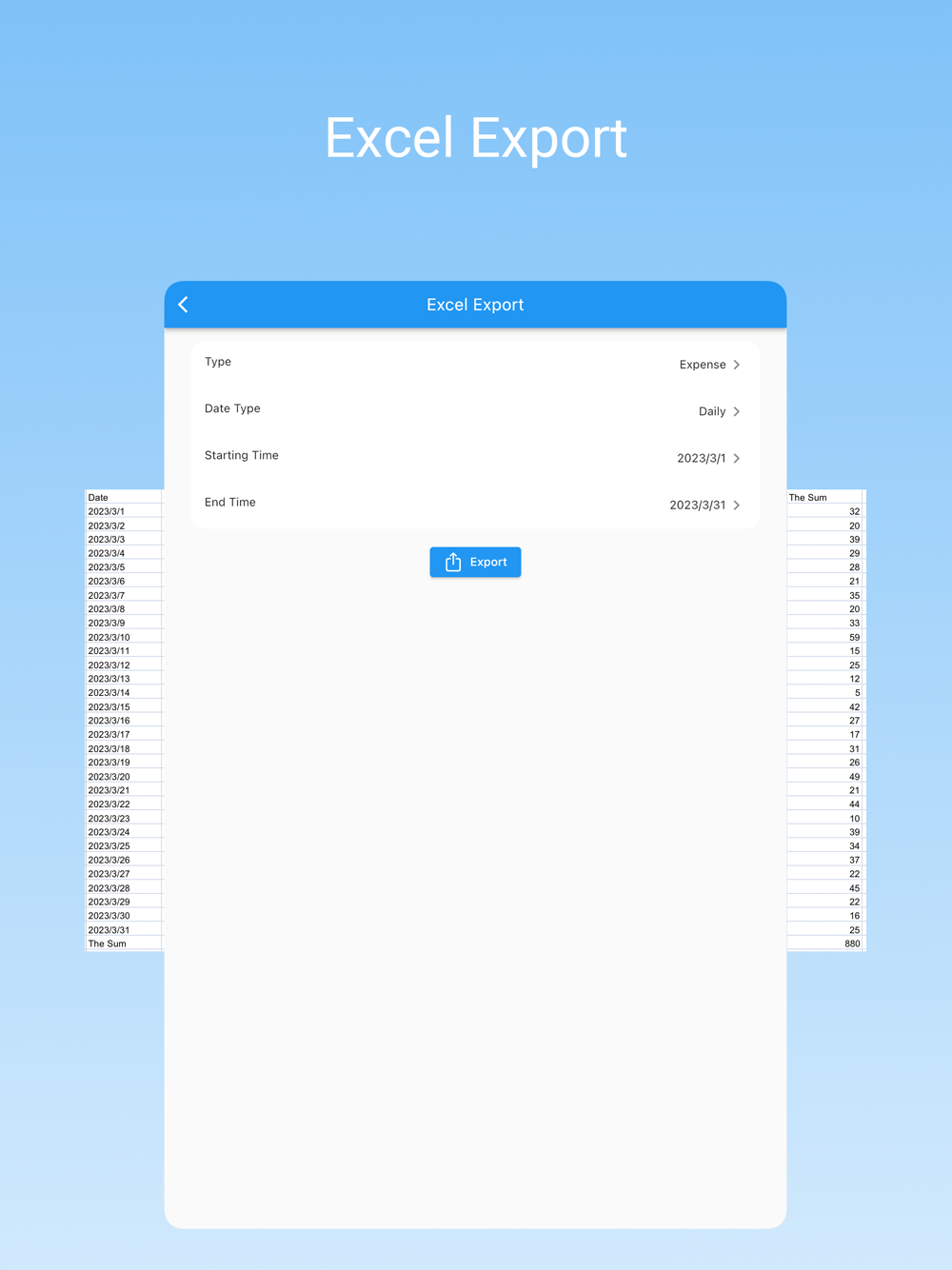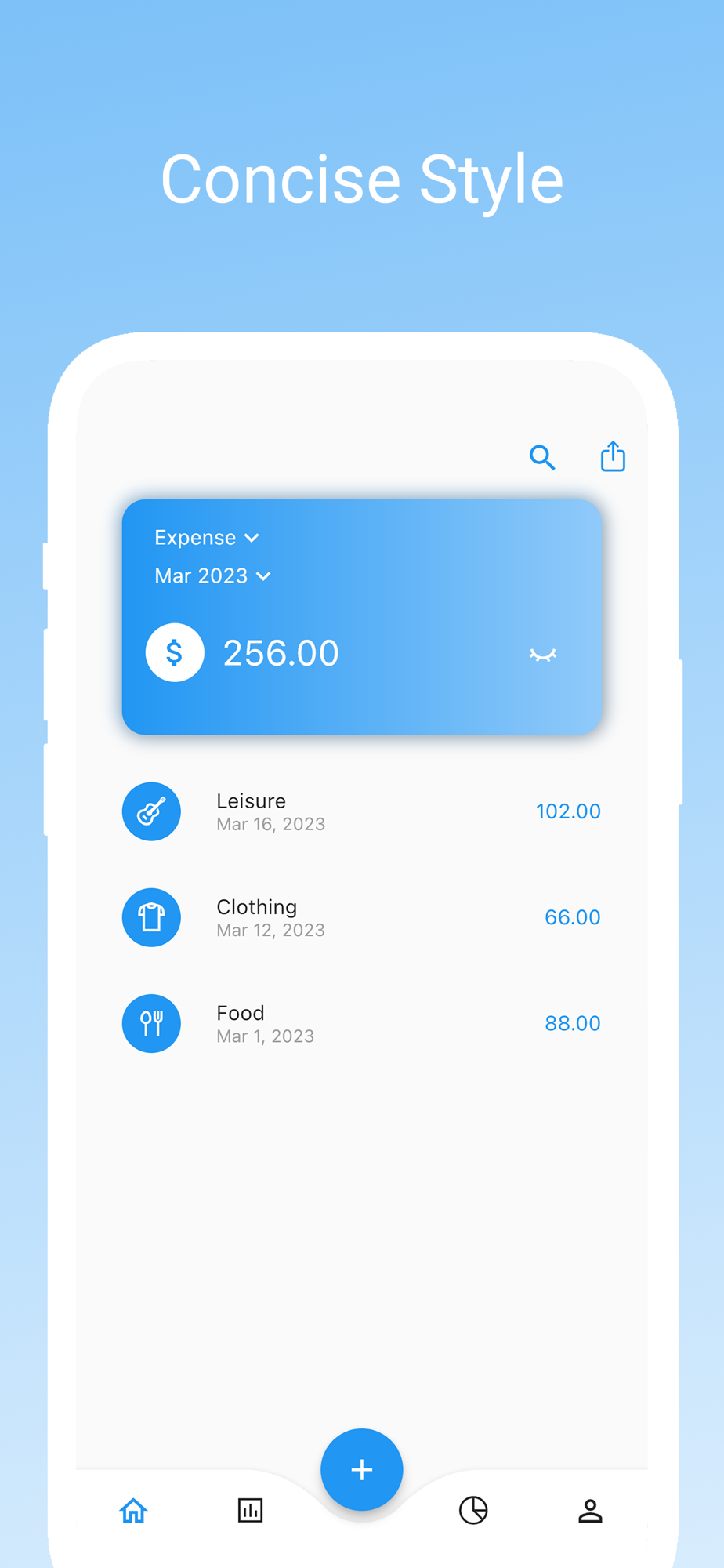 - Record income and expenditure: Add and edit expenditure and income, various categories to choose from.