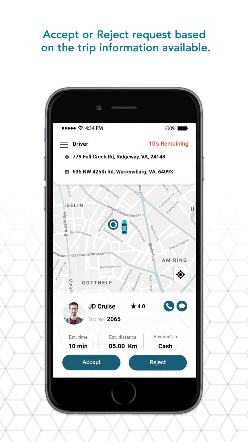 - You can accept incoming ride requests & complete the ride in simple steps: