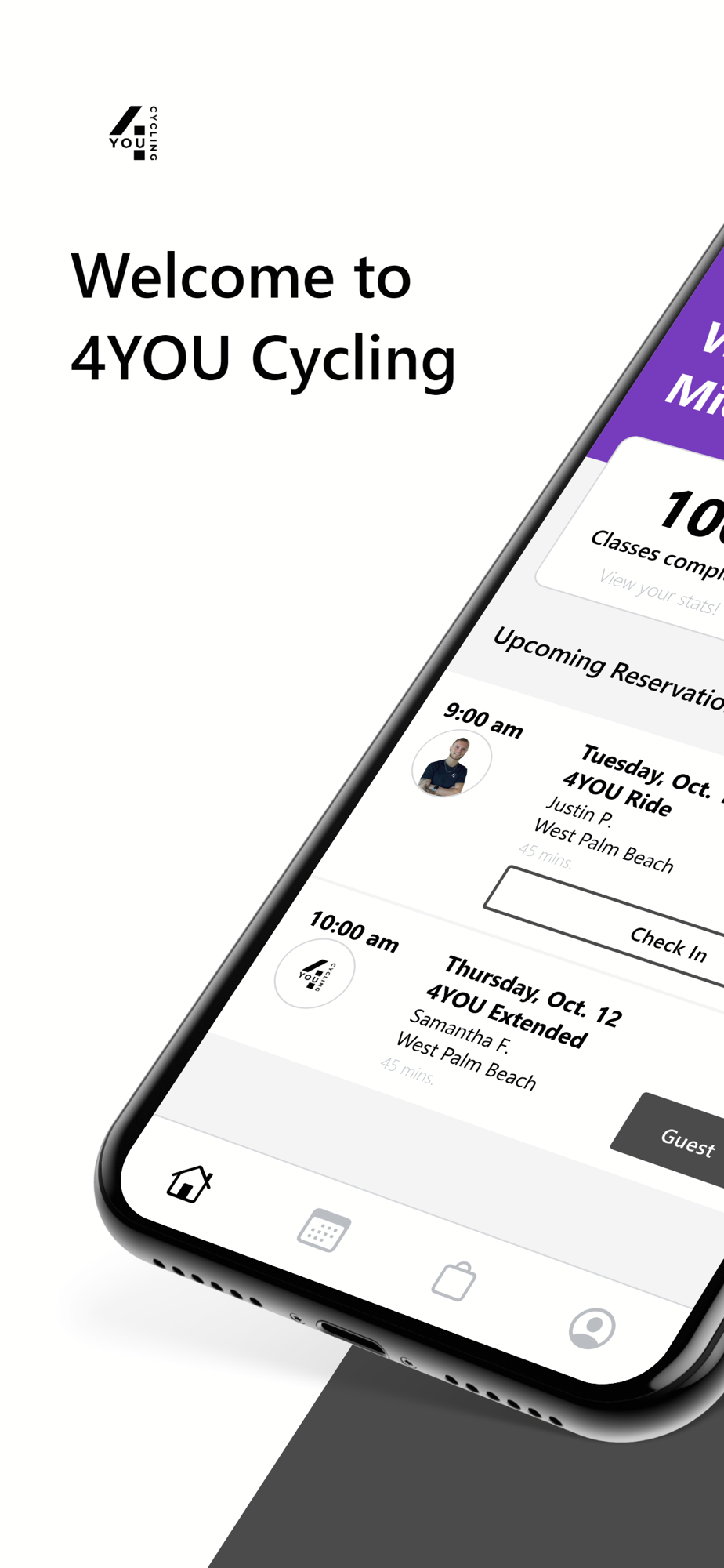 The official 4YOU Cycling app. With the 4YOU Cycling app you can view class schedules, book your next ride, purchase packages and memberships, view studio challenges, view ongoing promotions, and access all of your account information!