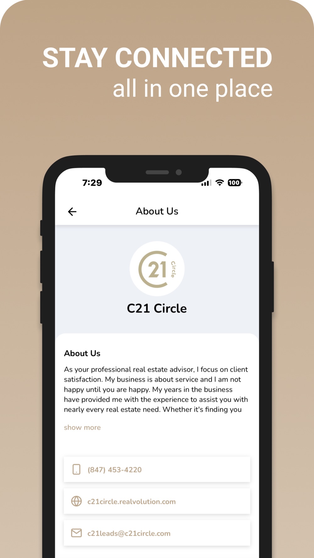 C21 Circle connects you and your real estate agent to ensure your home search journey is a success. Find the latest homes that match your must-haves, save open houses for later, schedule a tour of a home any time, and connect with your agent via C21 Circle. Plus, when you search for homes, your agent can see which listings are your favorite to help them better guide you towards your goal of home ownership!