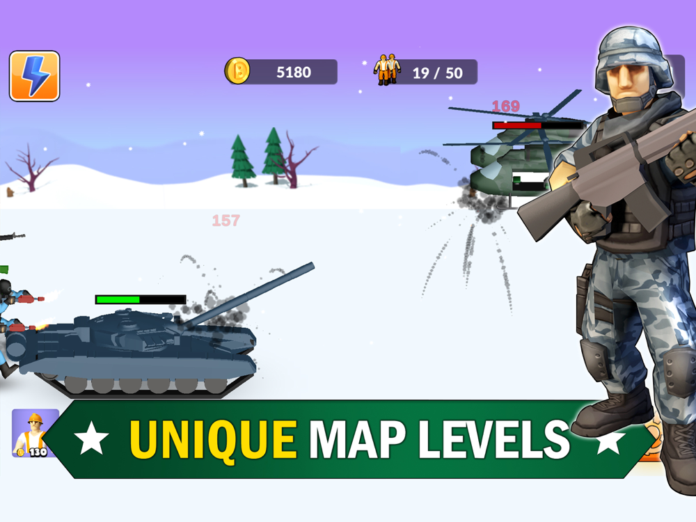 A new classic real-time military multiplayer strategy game about world war on your cell phone. Participate in online survival battles. Hold battles in the sky and on the ground. Develop your defense and attack strategy to defend your base and destroy the enemy. Hire the most powerful army and build military fortifications. Become the greatest general.