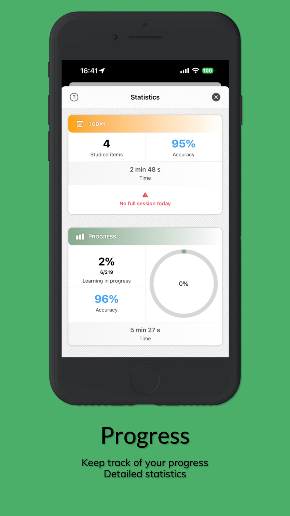 • Follow your progress thanks to the smart lists. Review difficult elements or check your last errors.