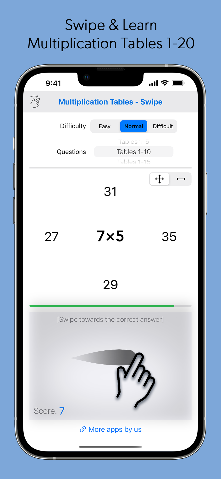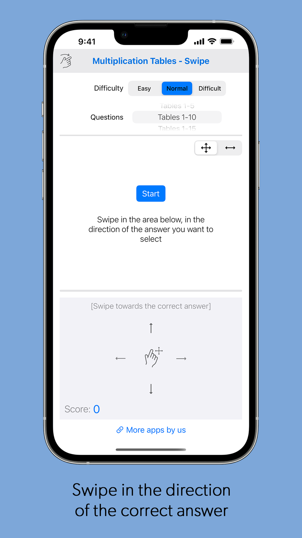 • High scores are maintained for each combination of difficulty level, category and swipe mode