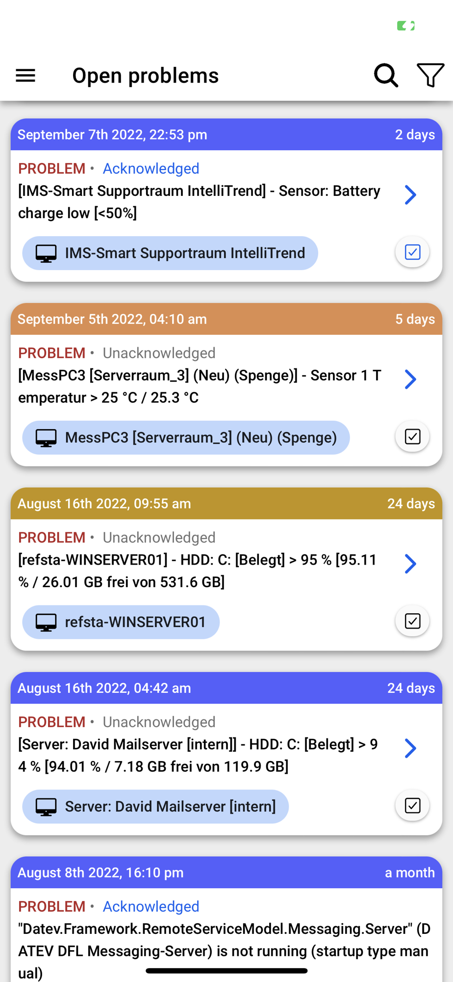 - Change severity of open problems