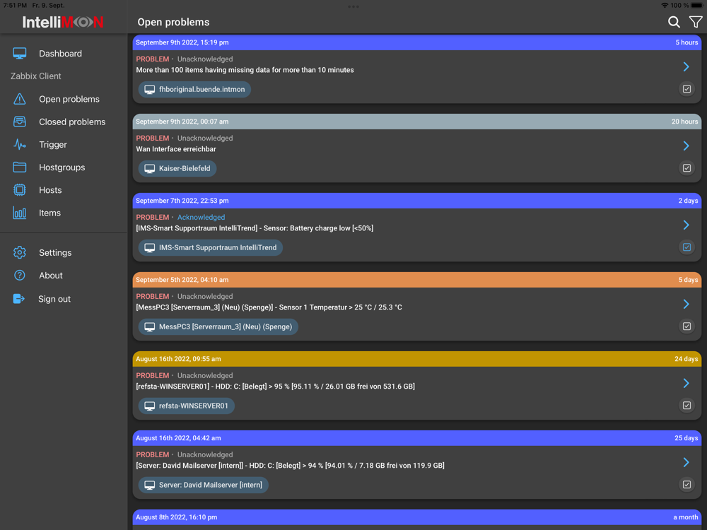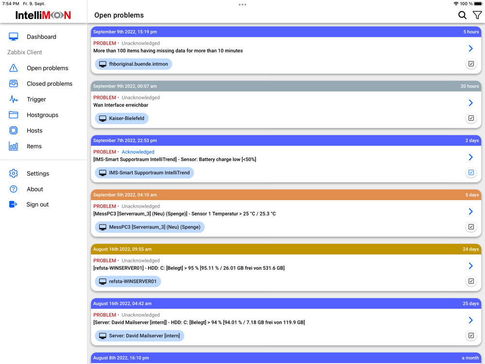 IntelliMon Mobile for Zabbix is developed by the official German Zabbix Premium Partner IntelliTrend GmbH for the Open Source Software Zabbix Network Monitoring. The app supports the 2 latest official Zabbix LTS versions and their major versions, i.e. 5.x.y and 6.x.y.
