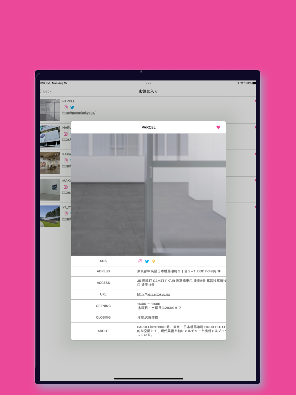 ◆ 東京のアートギャラリーをマップで検索できる アプリ