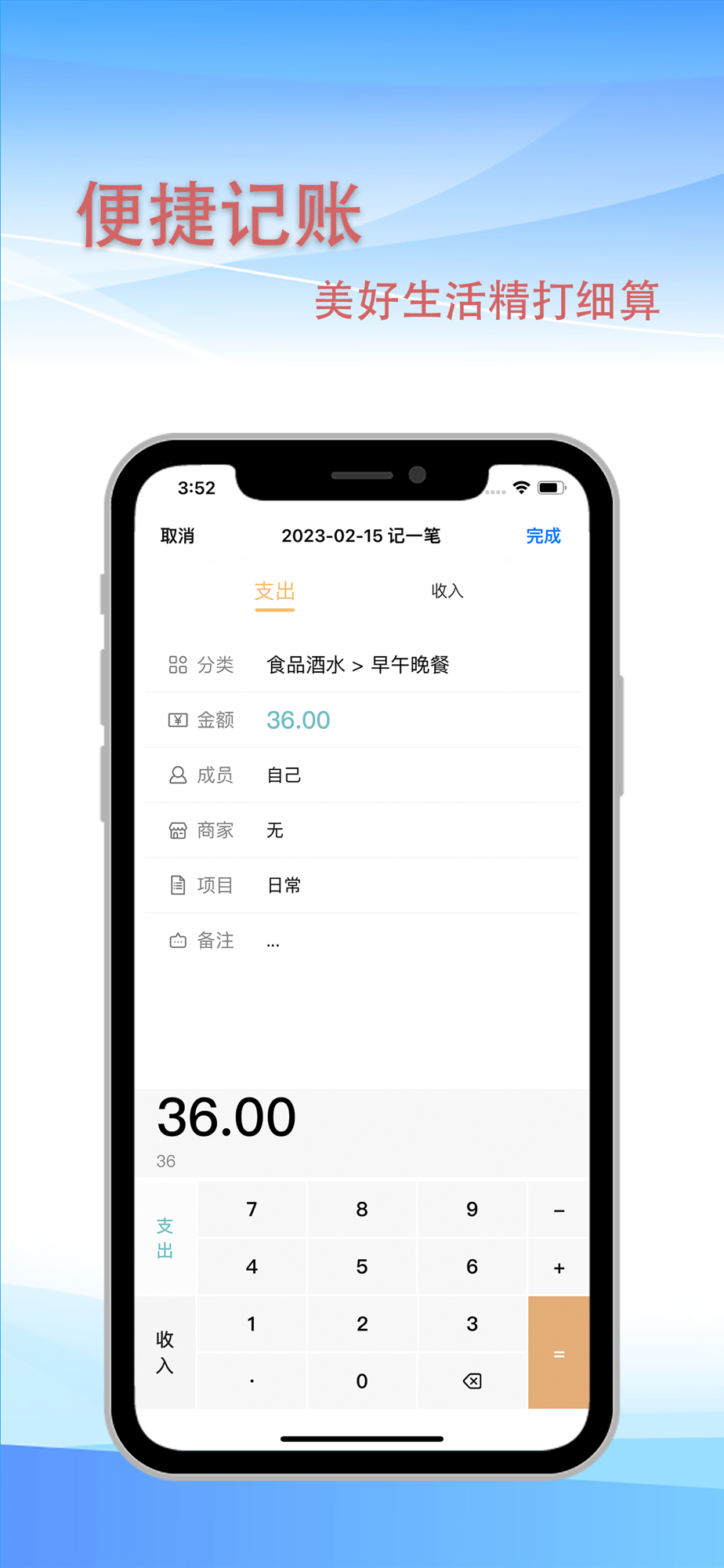 记账功能:记录每一笔流水,收入、支出分类统计,账单全面、图表清晰。精细生活,源自每一天的每一笔精打细算、无一纰漏地记录。