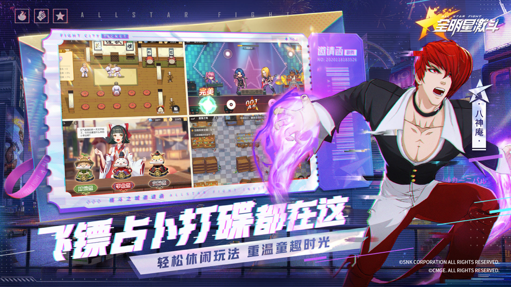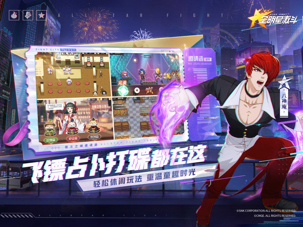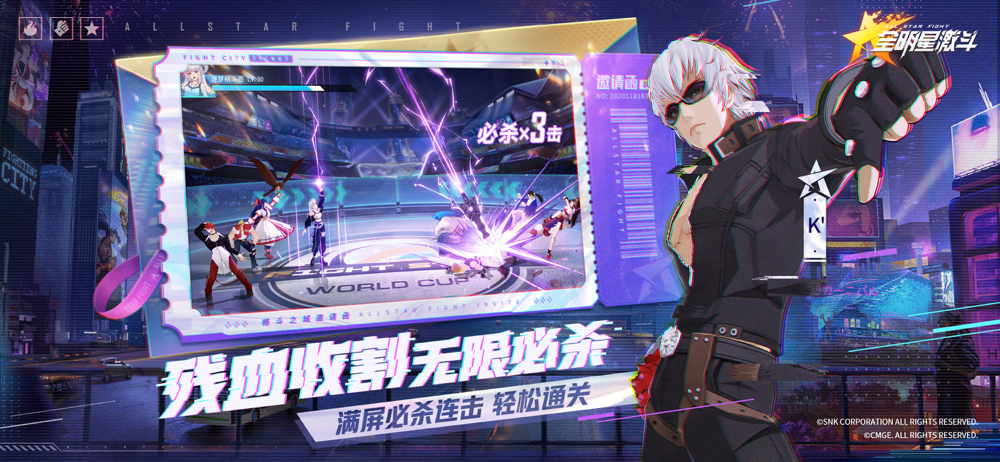 《全明星激斗》由SNK正版授权,是一款集结SNK多款人气IP角色的3D手游,不知火舞、橘右京、娜可露露跨时空集结,带你重燃青春热血向前!