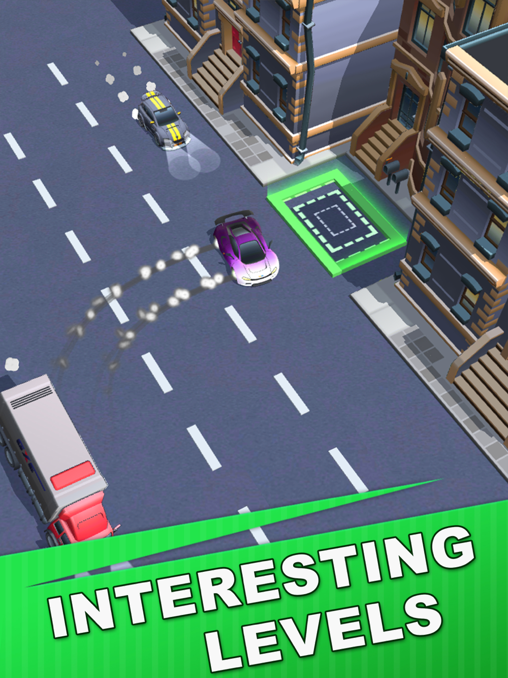 There are many obstacles in front of the parking space, show your superb skills and park the car in the parking space.Use your finger to control the direction of car, don't bump into others!