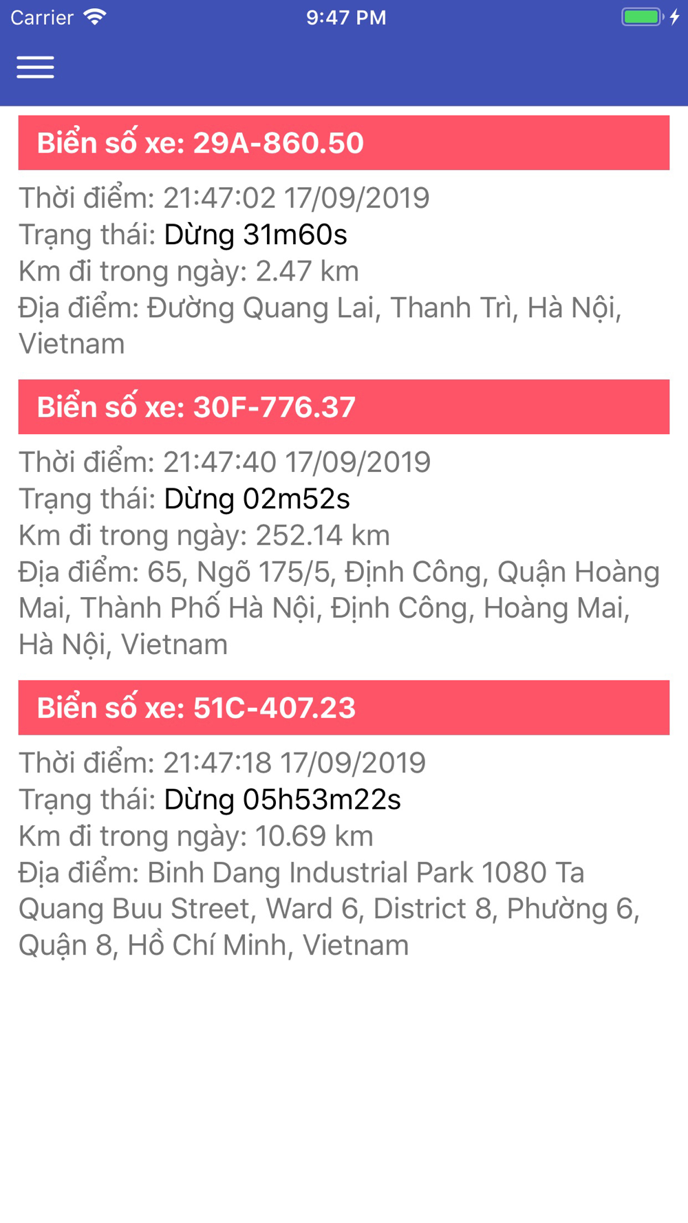 2. Chức năng xem tổng quan trạng thái danh sách xe