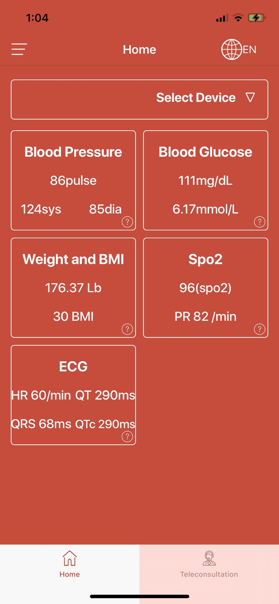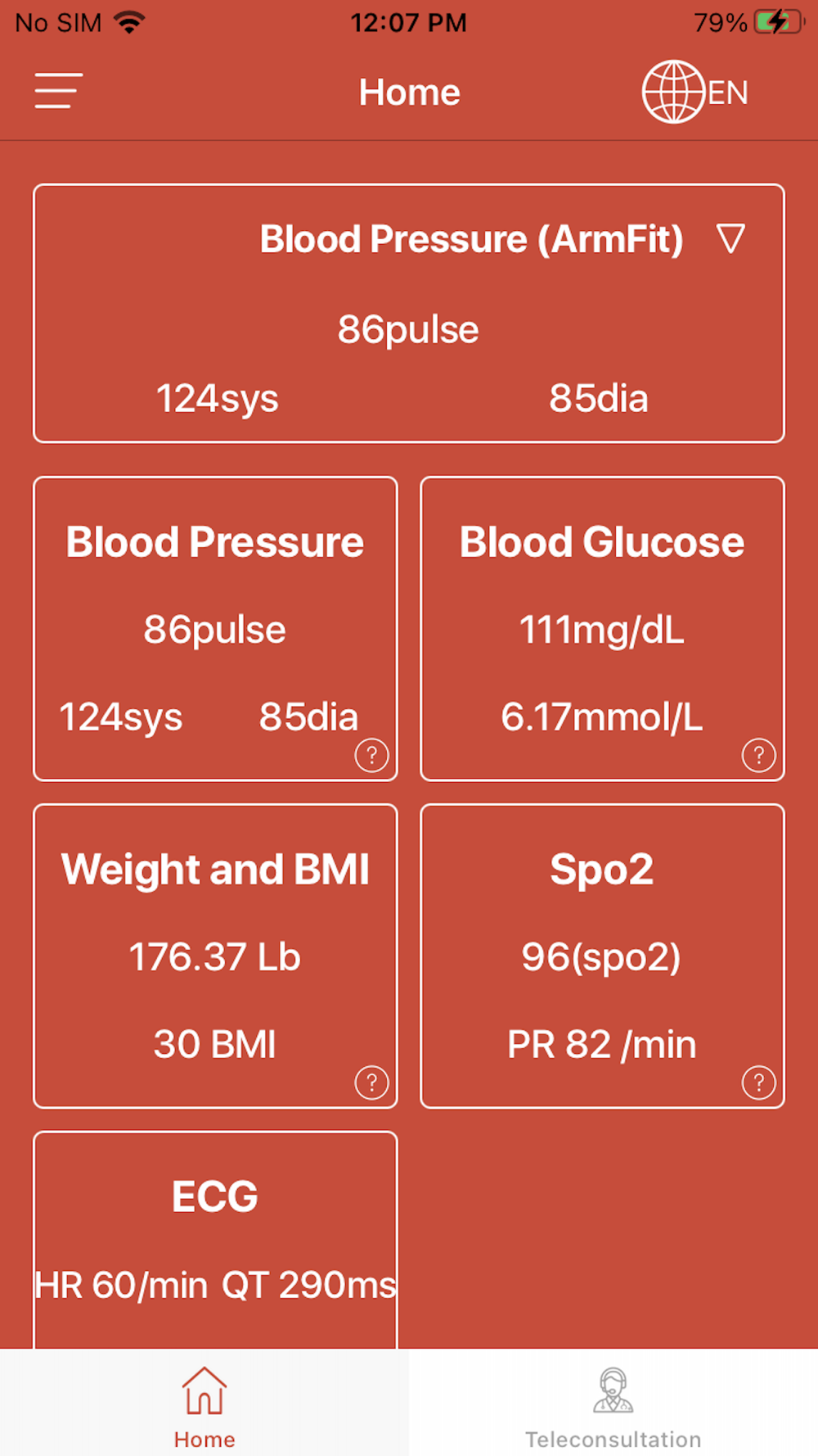 HealthOcta RPM app syncs with wireless medical devices to capture blood pressure, SpO2, glucose, weight, ECG and other vitals, and sends them to nurses and physicians for their review and monitoring. Other features include monthly reports, alerts for abnormal readings, and audio and video calls.