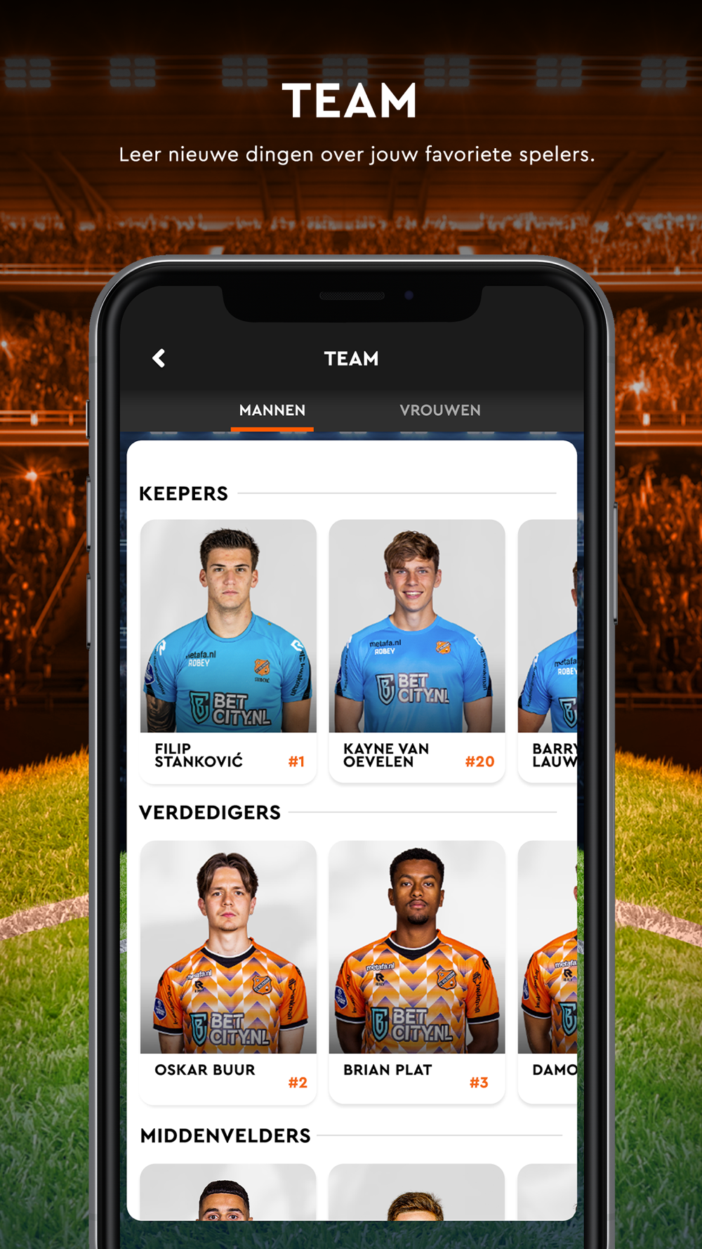 Verleng en/of koop je nieuwe seizoenskaart in de app en koop gemakkelijk tickets voor thuis- en uitwedstrijden.
