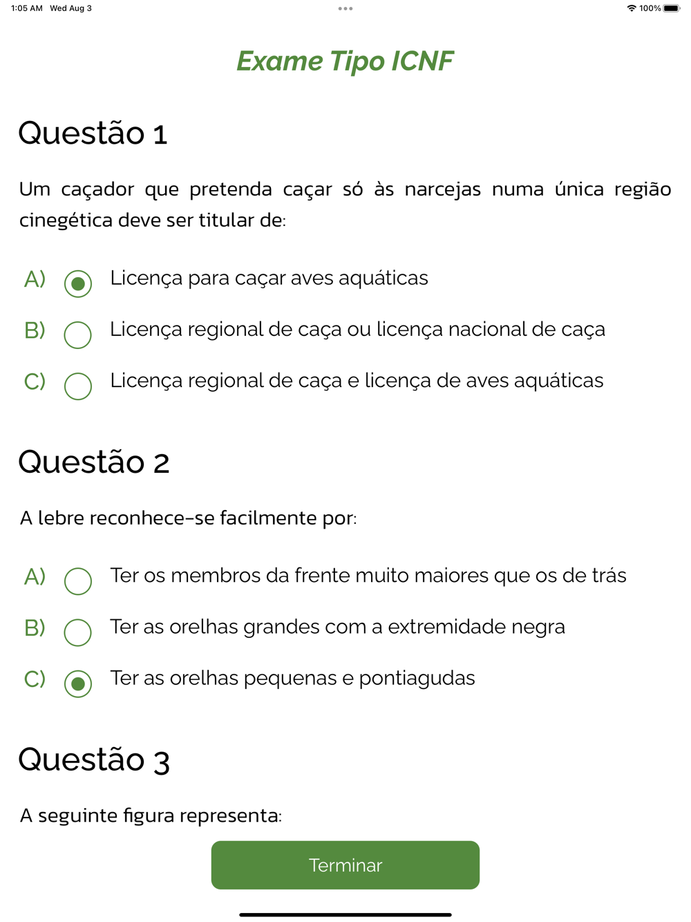 Depois testa os teus conhecimentos com as centenas de perguntas dos exames da Carta de Caçador da nova aplicação, que te ajuda a estudar para os exames oficiais!