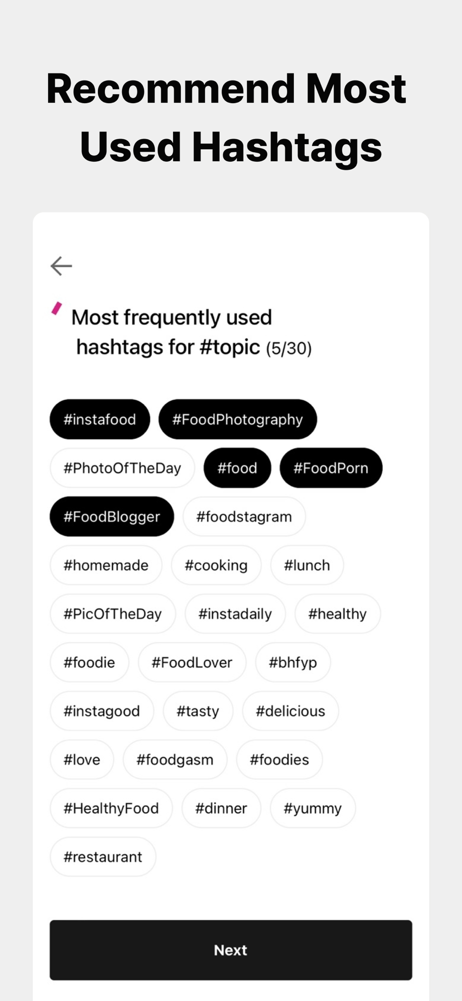 - Recommend popular hashtags that fit the topic you chose.