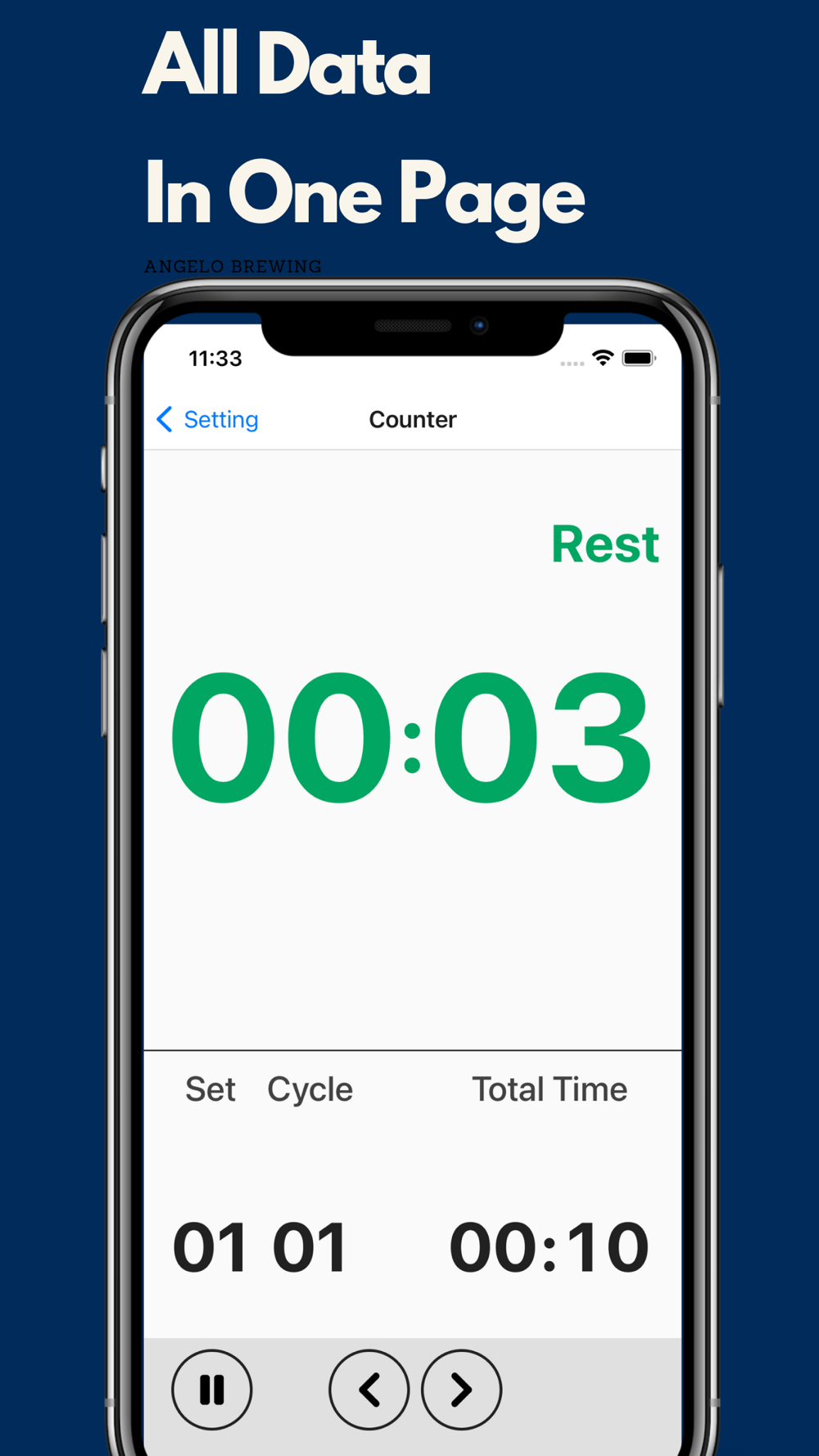 + To set up Prepare, work, rest, rest between sets, number of cycles, and set counts is very easy.