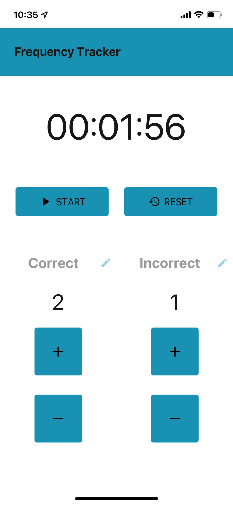 Counter and timer in one! Keep track of the frequency of an occurrence, over a period of time. There are plenty of timers or counters in the app store, but none that combine the two!