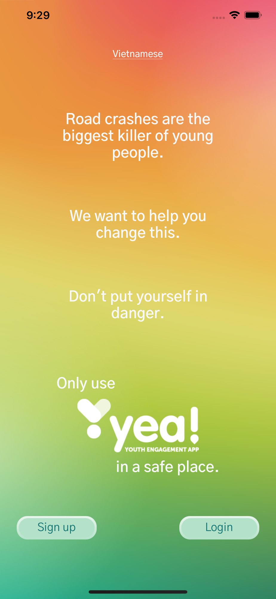 The Youth Engagement App (YEA) is a digital risk-perception tool to enable youth to mark map locations and report how safe they feel on their way to school. It aims to be a communication channel among youth and the decision makers, raising awareness of road safety and community engagement.