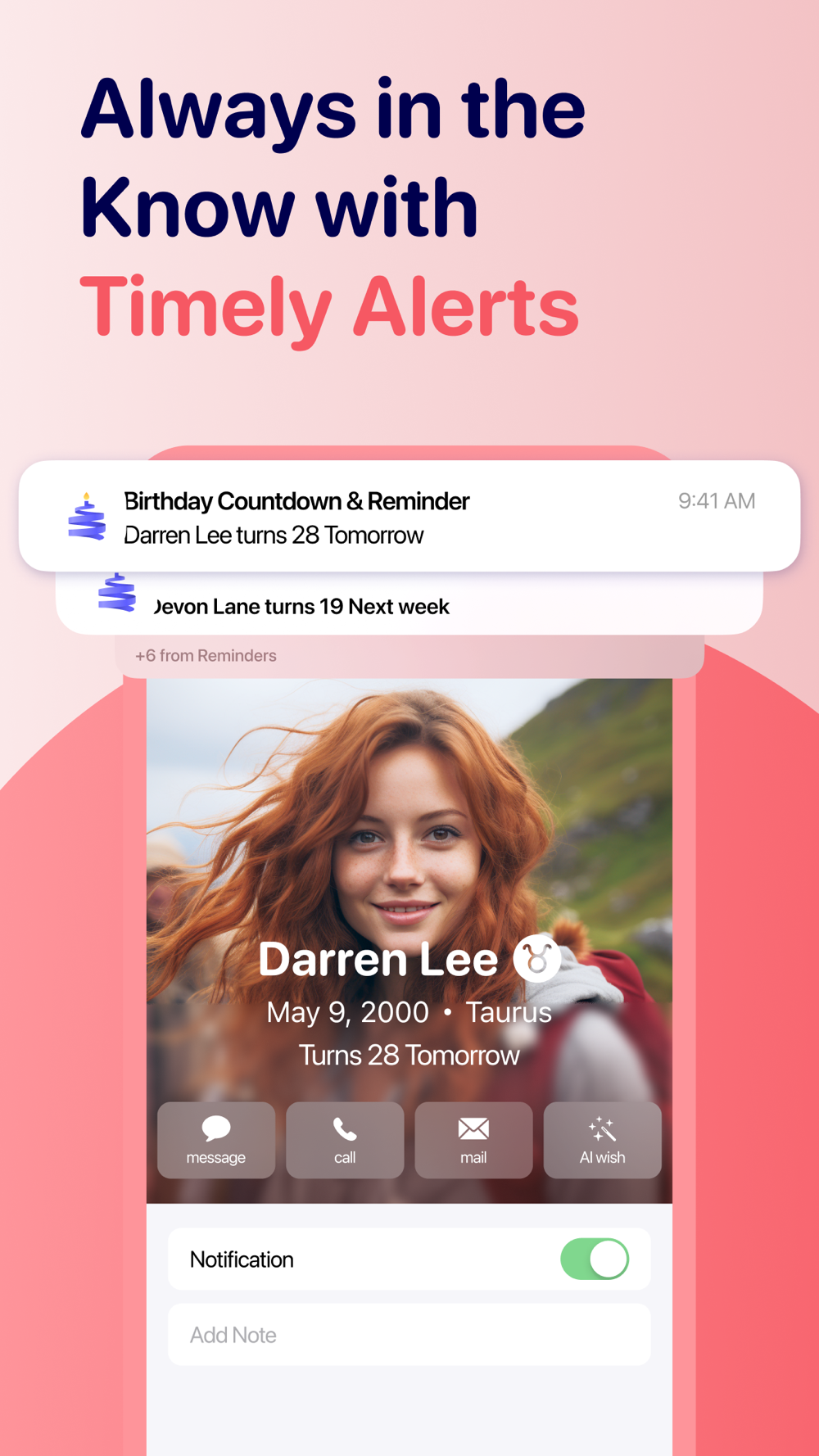 Advanced Reminders: Set bespoke reminders for each event. Get notified well in advance to prepare greetings and celebrate on time.