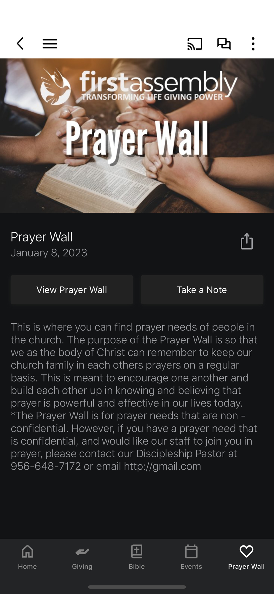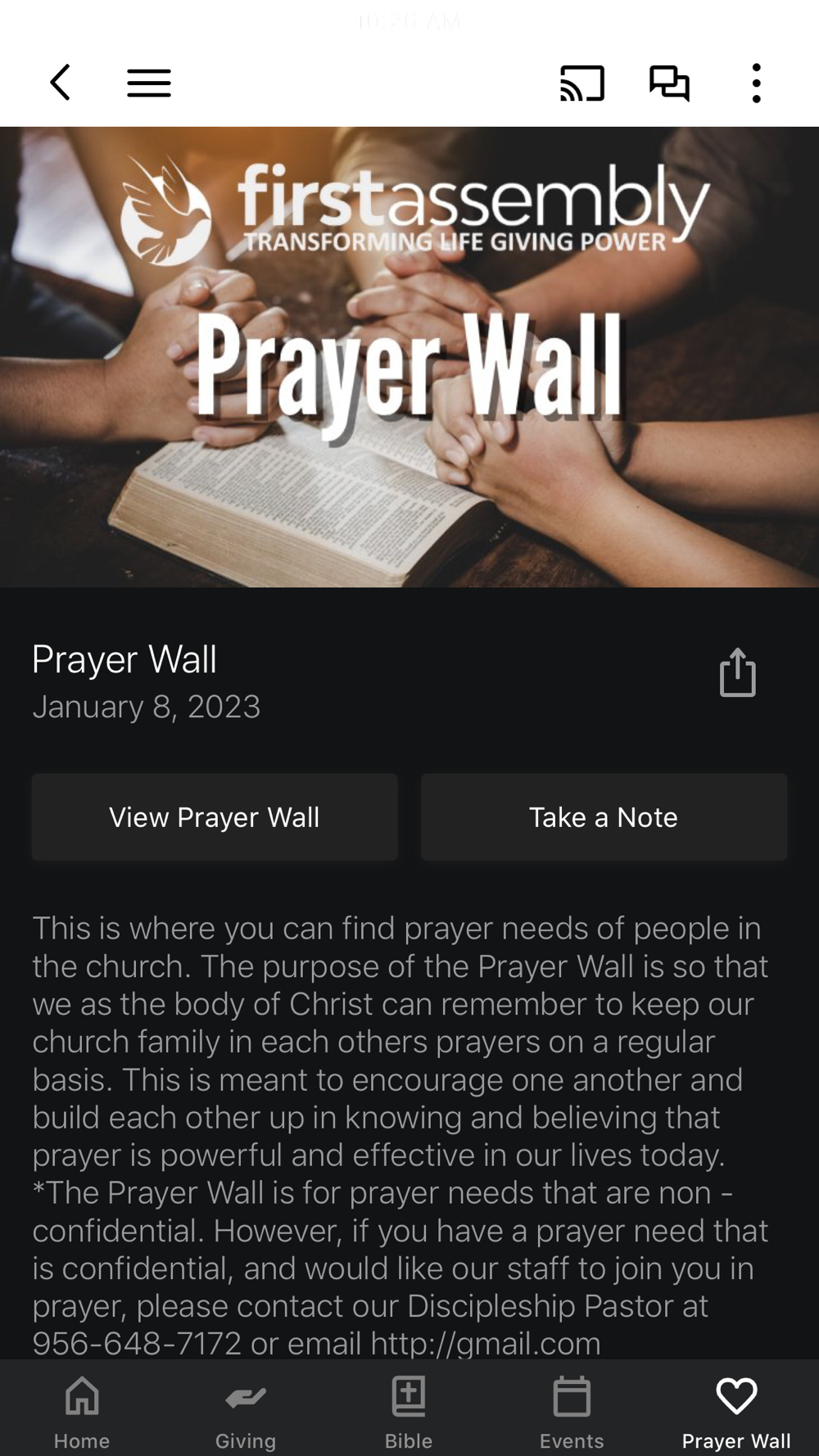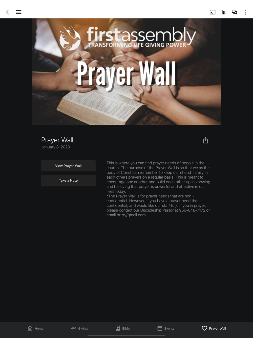 This app will help you stay connected with the day-to-day life of our church. With this app you can: watch or listen to past messages; stay up to date with push notifications; share your favorite messages via Twitter, Facebook, or email; and download messages for offline listening.
