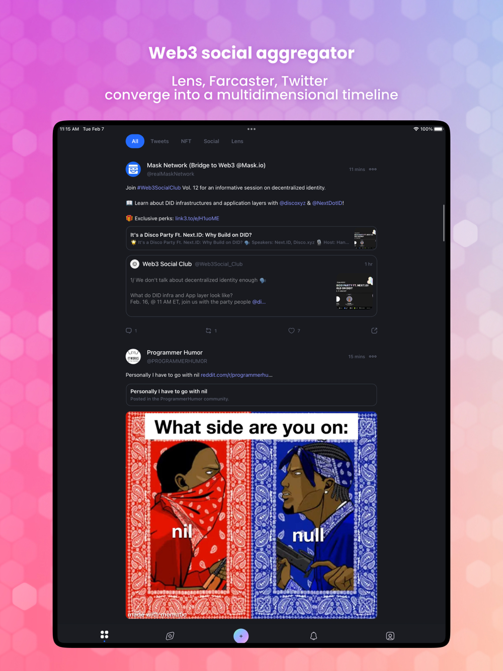 · Improve your feed by logging in to X to see what the profiles you follow are posting and minting in Web3. Optionally, you can sync your follows across networks.