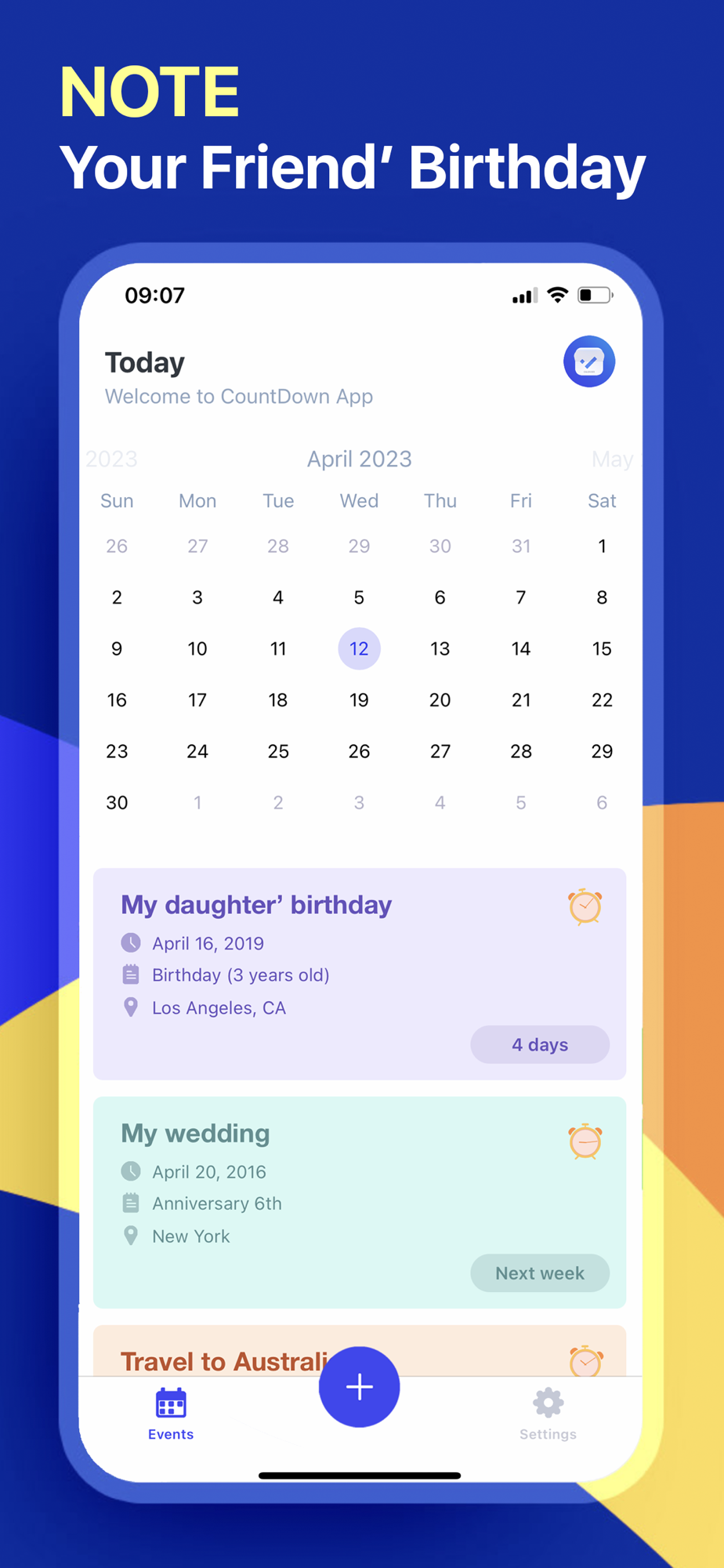• MANY EVENTS ELSE - you can note anniversary, holiday, meeting, ...