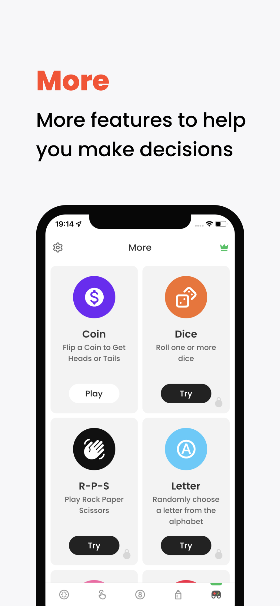Use a spinning wheel, roll dice, draw lots, spin a finger wheel, toss a coin, to help you say goodbye to the difficulty of making choices.