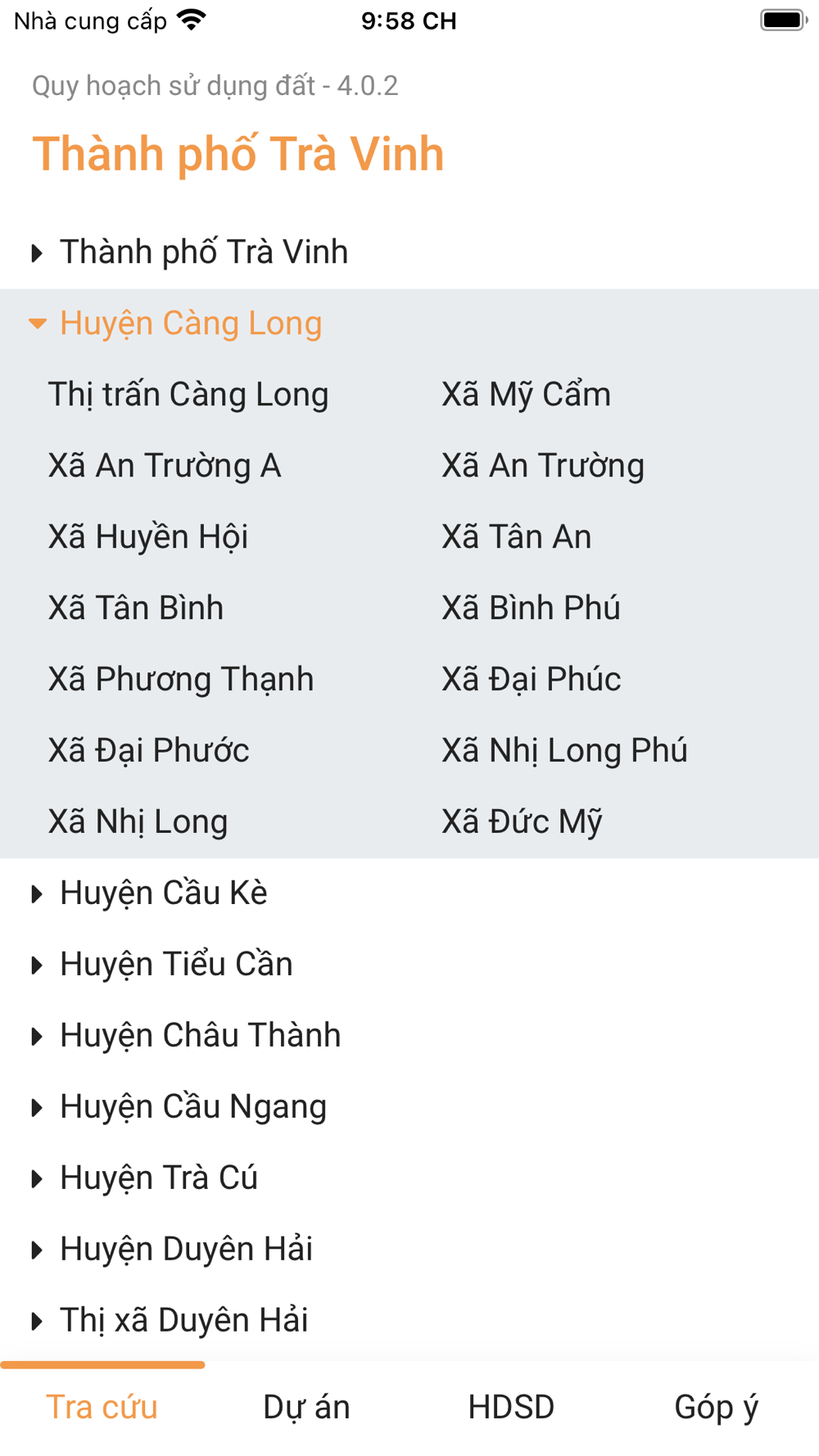 - Tra cứu thông tin quy hoạch thành phố Trà Vinh.