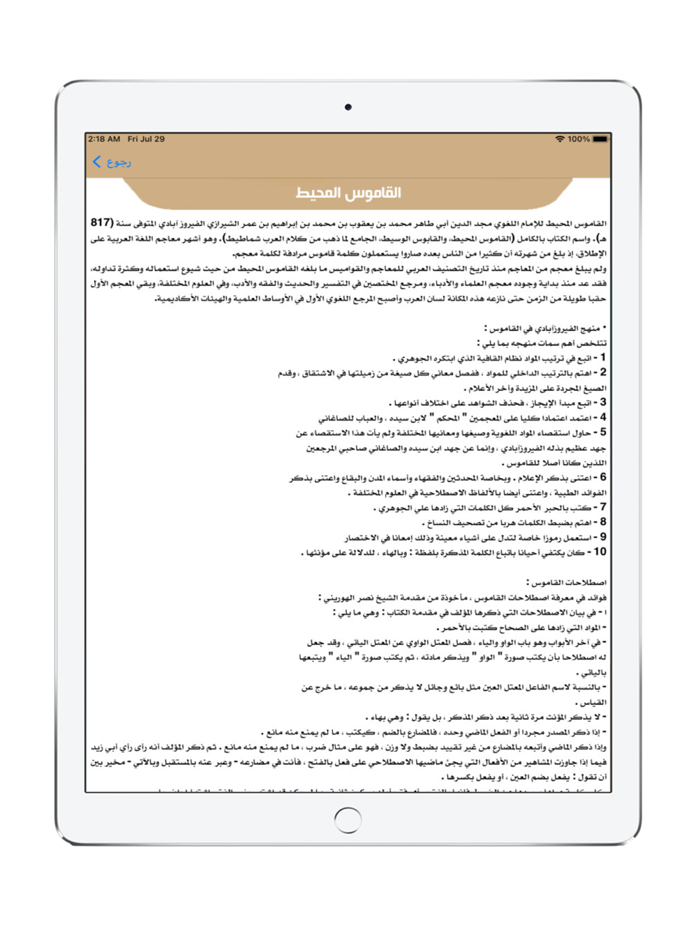 تطبيق معاجم اللغة العربية أول تطبيق من نوعه يحتوي على أكبر عدد من المعاجم العربية، وعلى معاجم المعاني ومعاجم الألفاظ مع العديد من الخصائص والمميزات المتنوعة تختصر لك الوقت والجهد في البحث عن الكلمة.