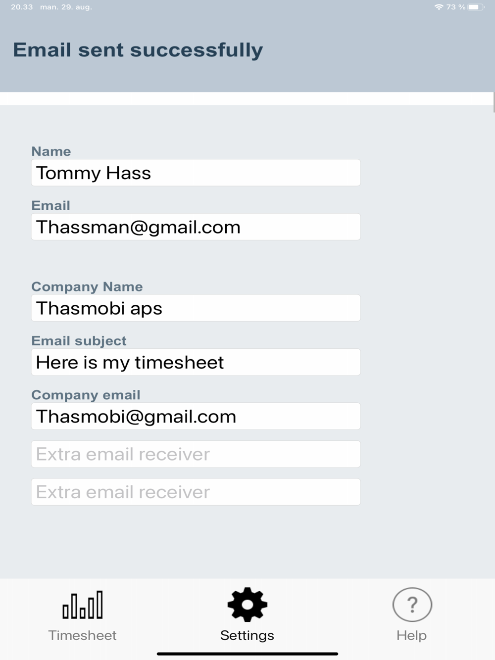 Enter all jobs of the day, and send your daily timesheet back to the office as an email.