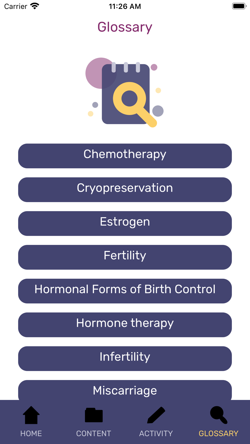 An app for cancer patients in Canada to learn more about fertility options before and after treatment. This information can help you make an informed decision that is right for you. This app is not intended to replace advice from a medical professional and we encourage you to seek medical diagnoses and treatment from a physician or trained healthcare professional.
