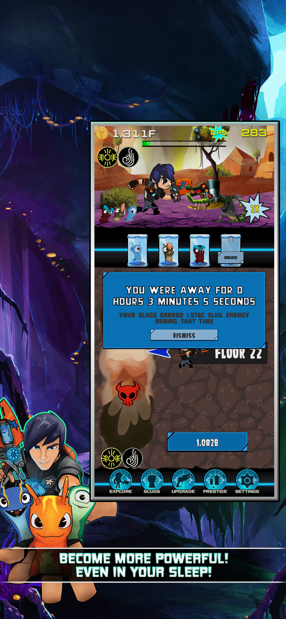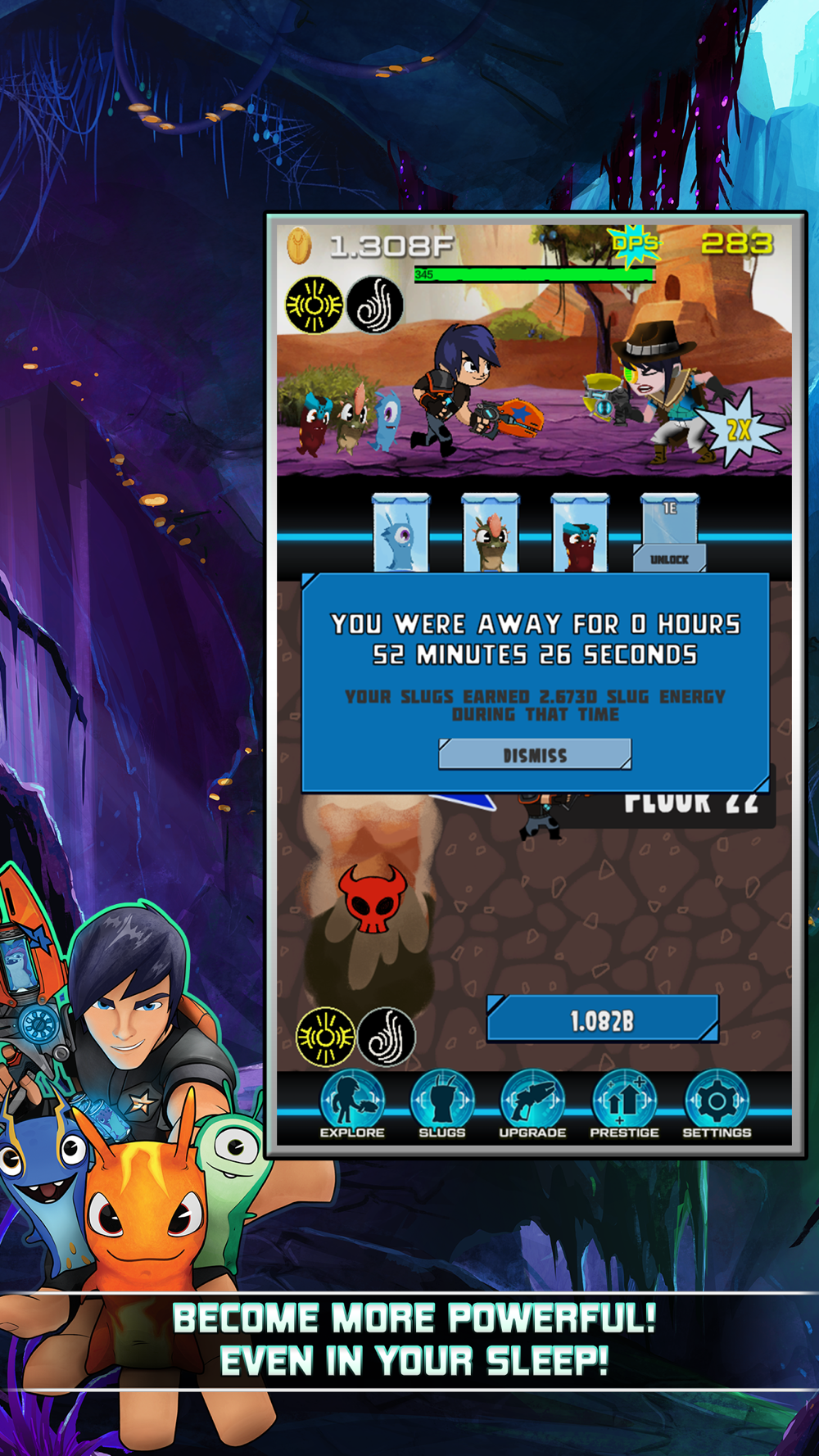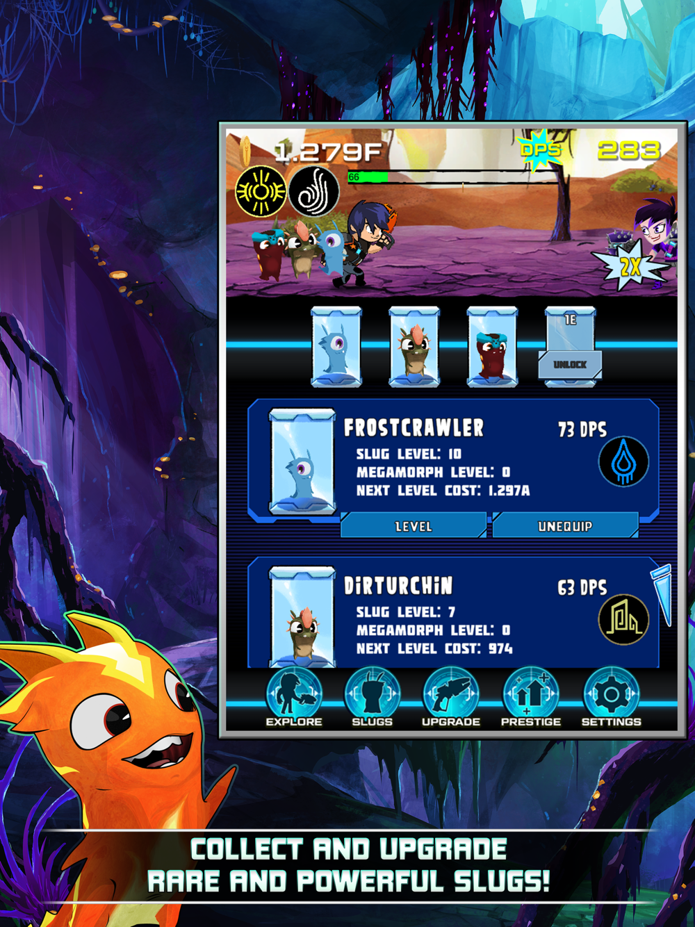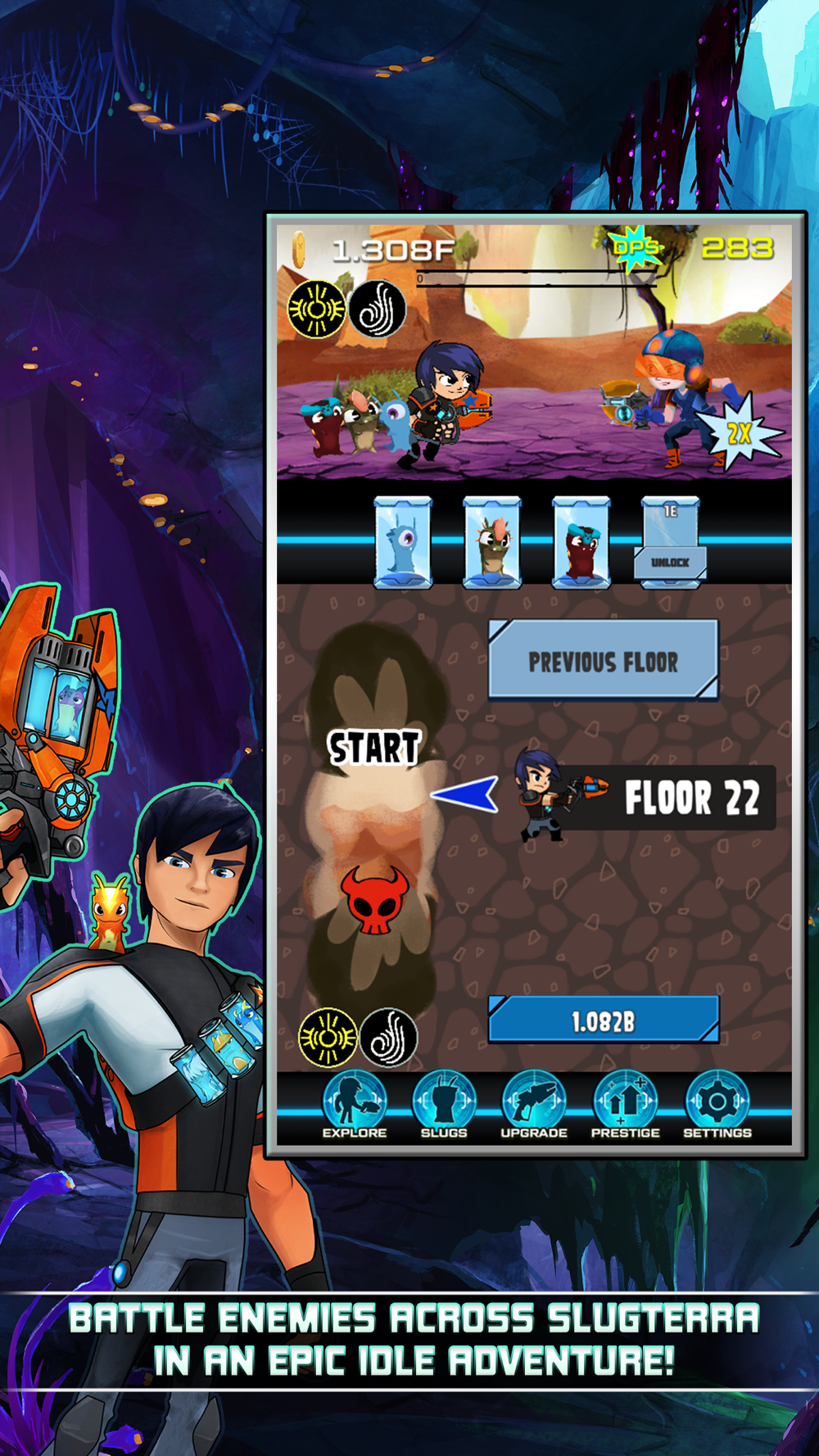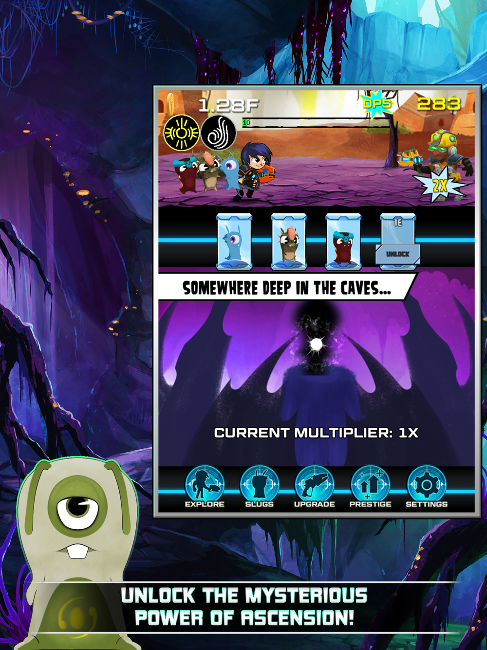 SLUGTERRA ASCENSION is the official idle adventure game based on the hit action property, SLUGTERRA. Help Eli Shane bring peace to Slugterra by exploring new caverns, discovering rare and powerful slugs, defeating bosses, upgrading his slug blaster, and ultimately unlocking the mysterious powers of Uni, the Universal Slug!