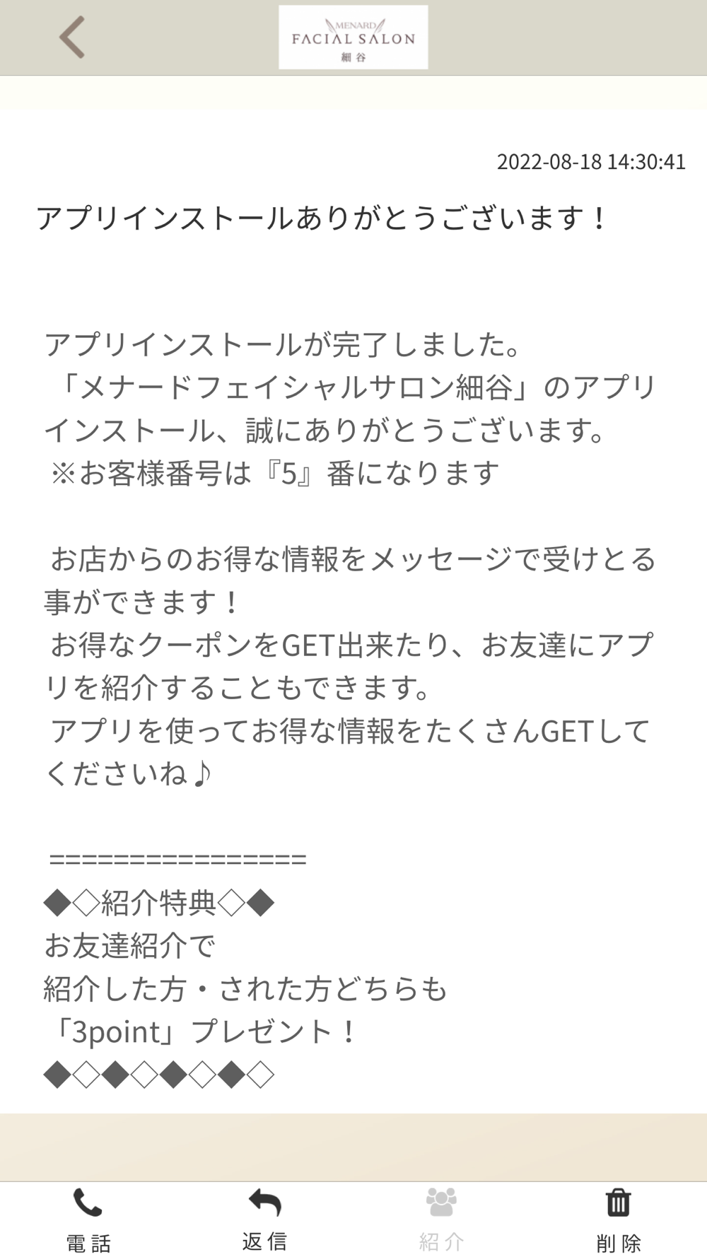 メナード細谷のアプリをSNSを通じてお友達に紹介する事ができます。