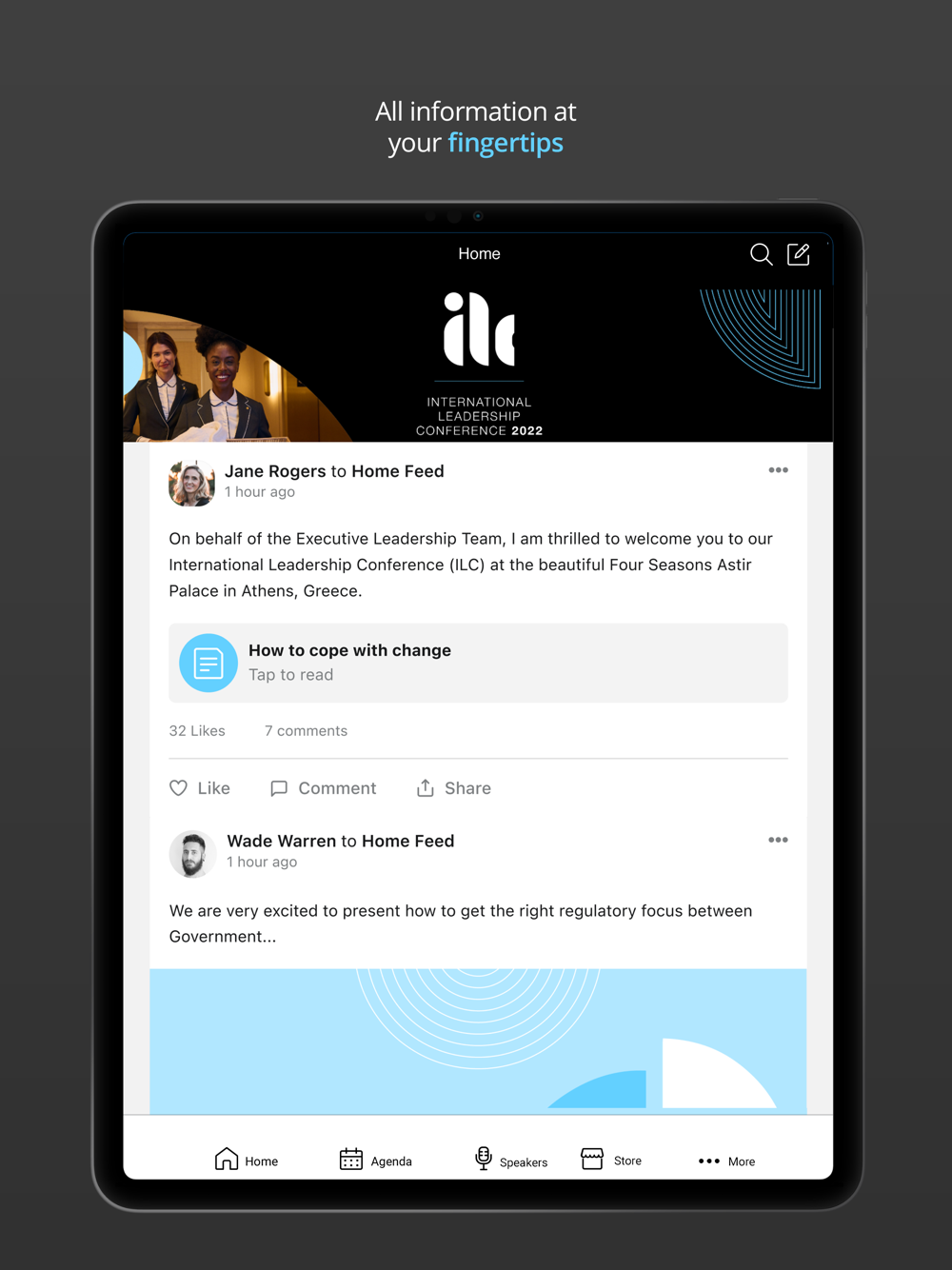 Enhance your event experience by using the ILC 2022 meeting app. Download to view the agenda, travel and venue information, and additional content.