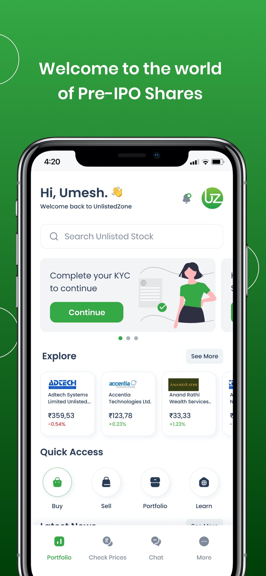 UnlistedZone is India’s fastest growing startup in Unlisted Shares Market. UnlistedZone in the last 5 years has served more than 1 million users on its platform. And, it is the most trusted partner to buy and sell unlisted shares in India. UnlistedZone provides a unique platform to invest in hidden gems of unlisted shares market at early or growth stages of business. This application will help you to invest in the unlisted companies such as Ola, Swiggy, Tata Tech, CSK, PharmEasy etc before they go public.