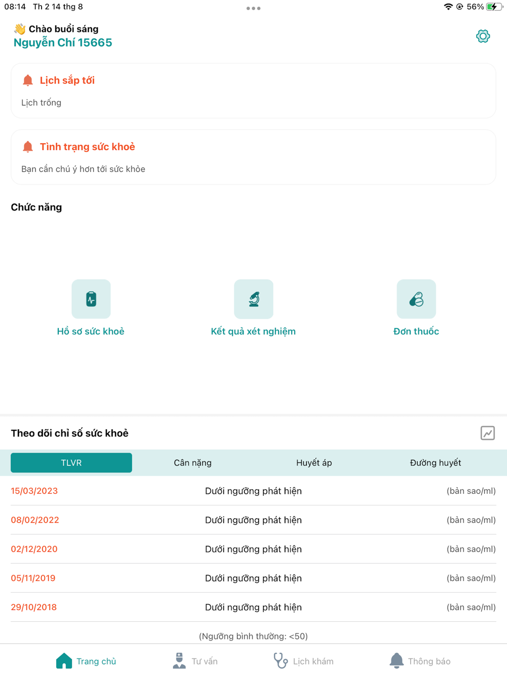 Ngoài ra ứng dụng còn cung cấp các thông tin tư vấn về kết quả xét nghiệm cũng như là các thông tin về tình trạng sức khoẻ của bệnh nhân.