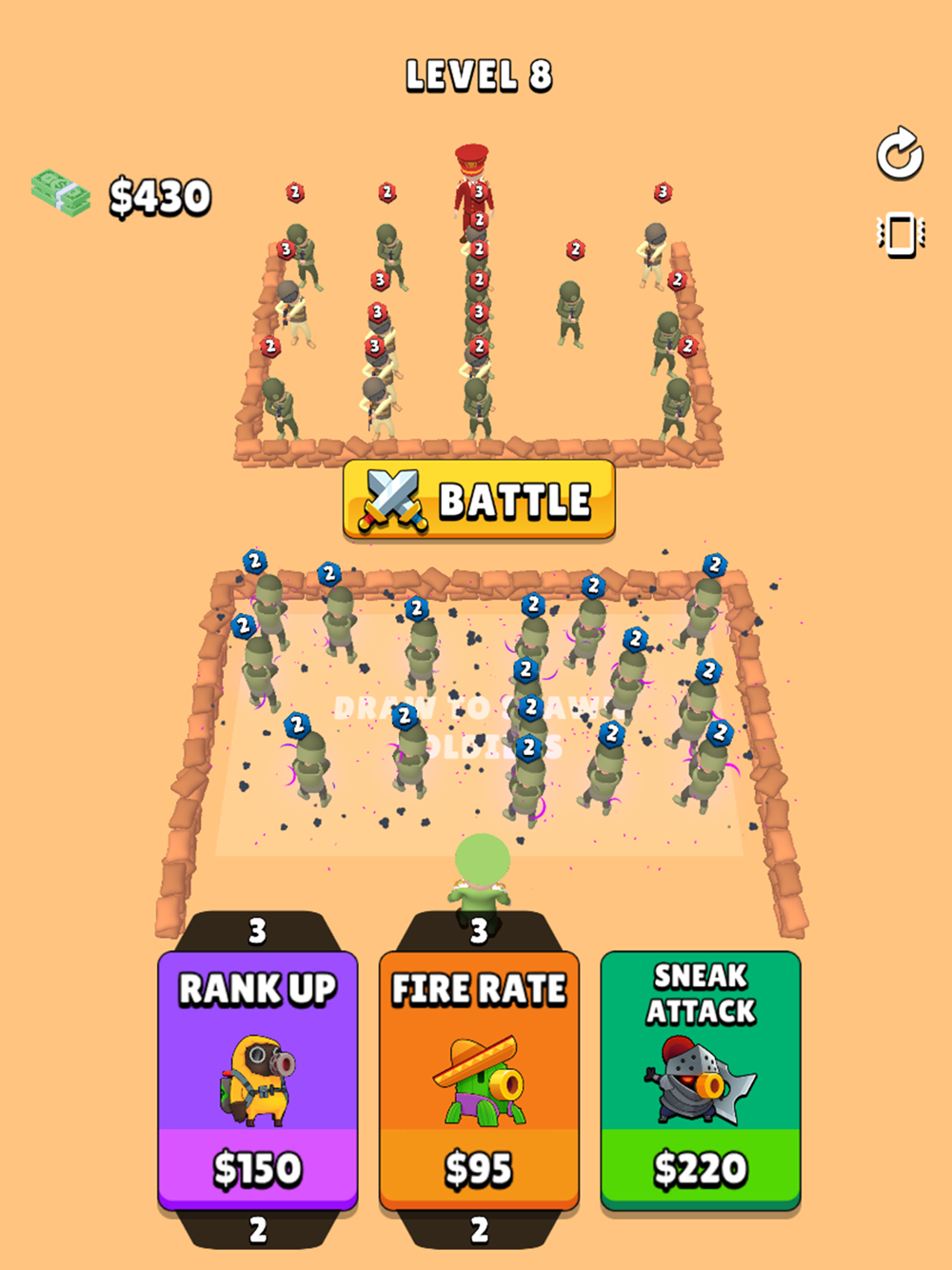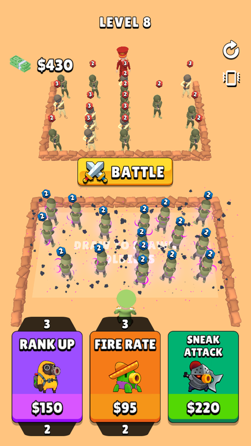 Draw the perfect army, upgrade soldiers and guns then beat the enemies!