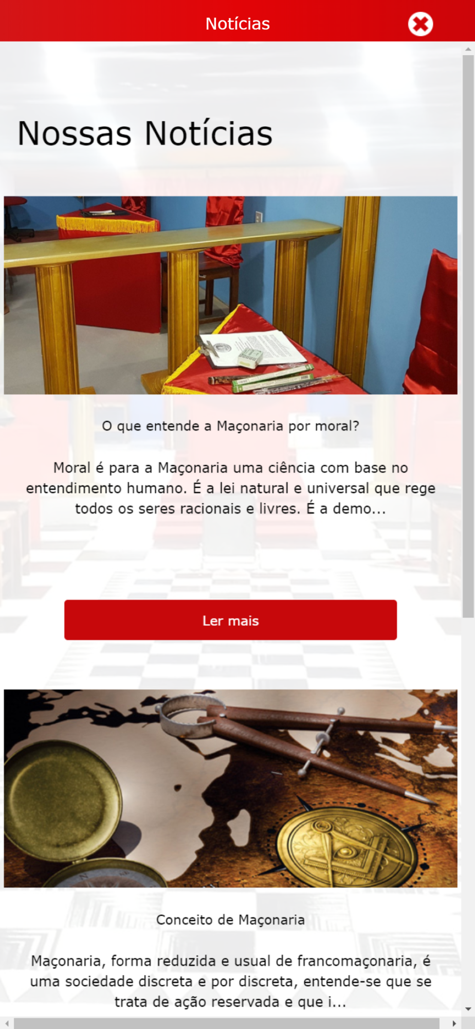 Sobre a GOAP Temos por finalidade levar a filosofia, a educao e cultura manica a todos os homens, fazendo renascer em cada um os reais e sublimes valores, incentivando seus membros ao verdadeiro princpio da virtude, constituindo-se assim, como uma instituio essencialmente filosfica e solidria entre seus membros. Trabalhamos pelo aperfeioamento moral, intelectual e social da humanidade, pelo fiel cumprimento do dever e a constante busca da verdade, cultivando entre todos o conhecimento de que cada um filho do Deus Criador e que as limitaes geogrficas devem servir apenas para facilitar a busca da felicidade pela correta aplicao da justia. Nossos fins supremos so: Liberdade, Igualdade e Fraternidade. Reunimos em um ambiente fraternal e propcio para concentrar ateno e esforos para melhoraria de carter e de desenvolvimento de sentimento de responsabilidade, que nos faz meditar tranquilamente sobre a nossa misso na vida, recordando constantemente os valores eternos cujo cultivo nos possibilitar acercar-se da verdade. Este Aplicativo dispe de vrias funcionalidades para seus usurios sendo elas: - Atravs do boto "Credencial Manica" o usurio ter acesso a carteira de membro. - Atravs do boto "Lojas" o usurio ter acesso as Organizaes manicas que fazem parte da GOAP. - Atravs do boto "A GOAP" o usurio ter acesso a informaes sobre a histria e sobre os princpios da GOAP. - Atravs do boto "Meus Dados Pessoais" o usurio ter acesso a seus dados cadastrados no site da GOAP. - Atravs do boto "Eventos" o usurio ter acesso aos eventos cadastrados no site da GOAP. - Atravs do boto "Notcias" o usurio ter acesso as notcias cadastradas no site da GOAP. - Atravs do boto "Viso Estratgica" o usurio ter acesso a relatrios e grficos sobre informaes da GOAP - Atravs do boto "Maons da GOAP" o usurio ter acesso a informaes bsicas de outros membros da GOAP. - Atravs do boto "Mensagens" o usurio ter acesso as mensagens que a GOAP envia aos seus membros. - Atravs do boto "Contato" o usurio ter acesso a informaes de contato do GOAP.