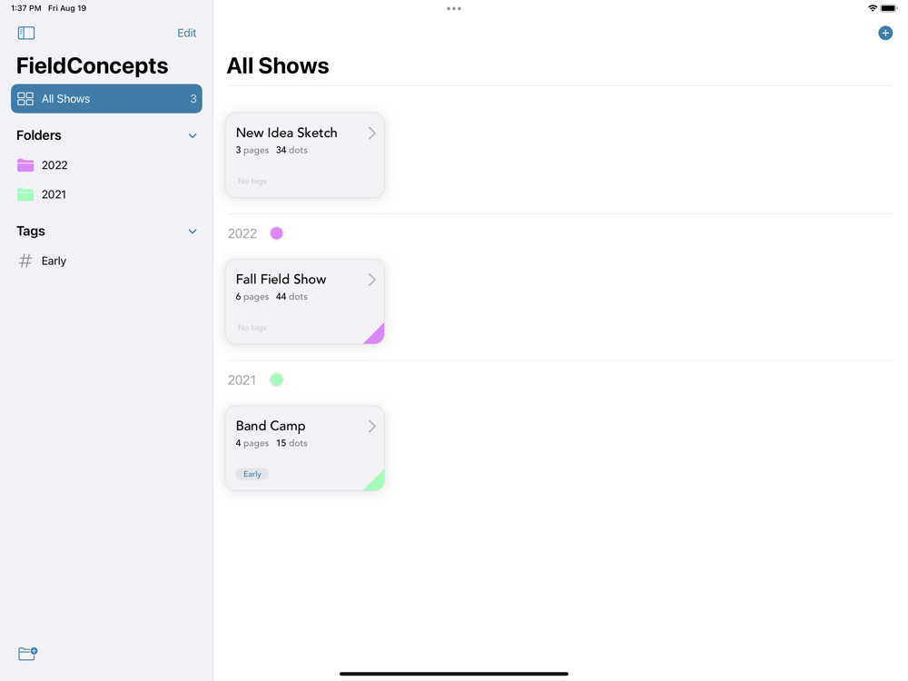 FieldConcepts is an app for writing drill for marching bands! It enables you to write, design, and export field shows all from your iPad.
