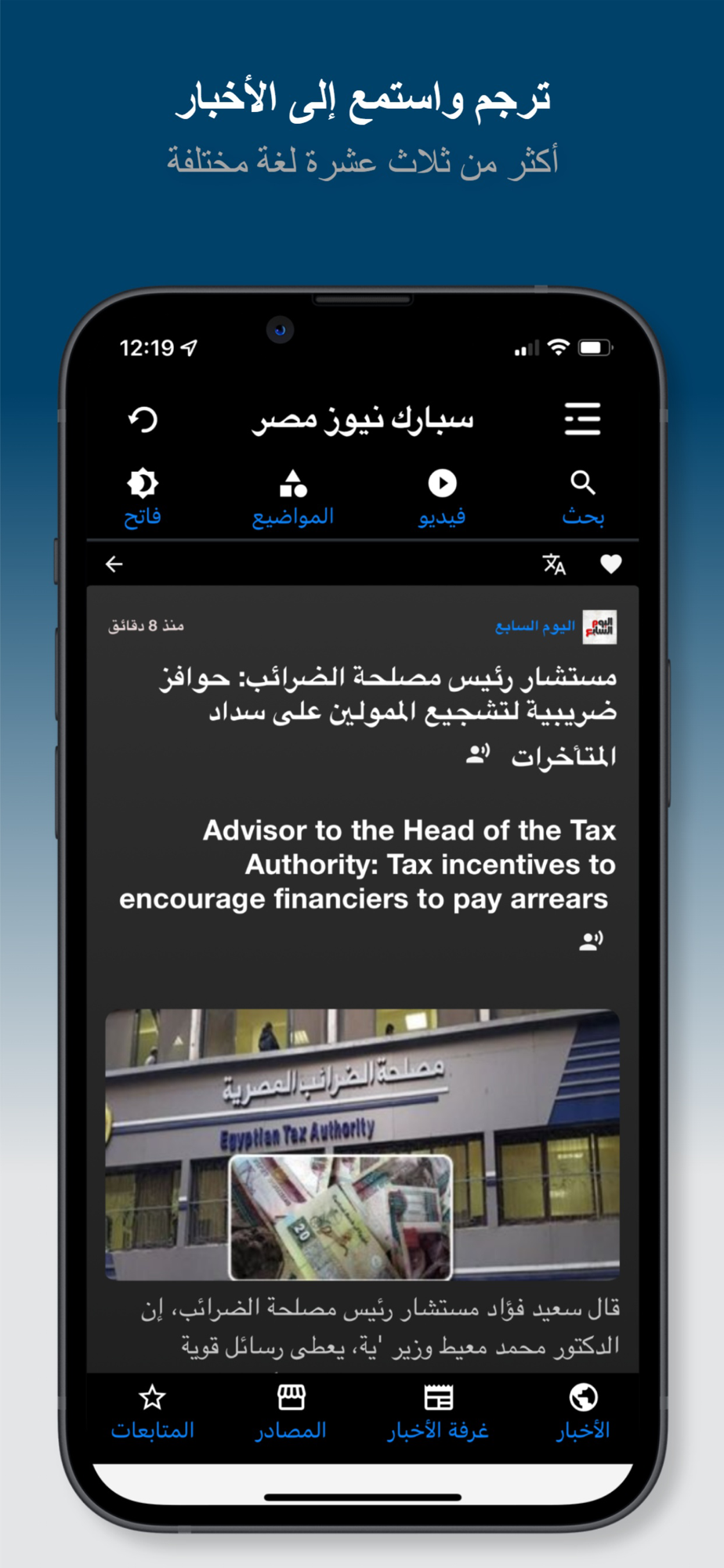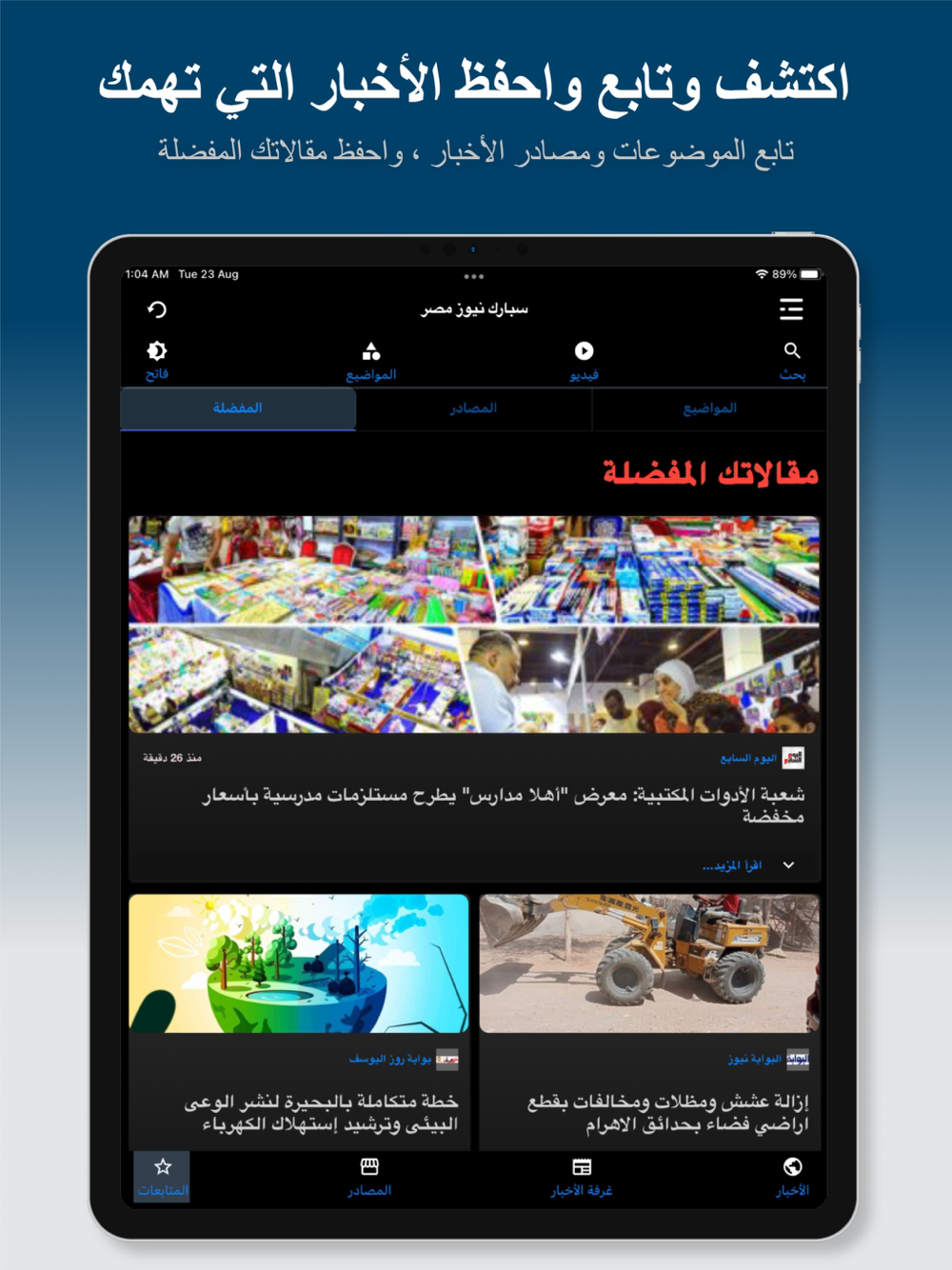 يقوم تطبيق سبارك نيوز مصر بتجميع وتنظيم وتسليط الضوء علي أحدث وأهم أخبار مصر والعالم ، مما يتيح لك اكتشاف و متابعة الأخبار المصرية والعالمية العاجلة والبقاء على اطلاع بها في مكان واحد. كما يمكنك التطبيق من ترجمة القصص الإخبارية والاستماع إليها بأكثر من ثلاث عشرة لغة مختلفة. بالإضافة إلى ذلك ، يتيح لك التطبيق اكتشاف ومشاهدة أفضل مقاطع الفيديو الإخبارية المصرية والعالمية والمتخصصة. كما يسمح لك التطبيق بالحصول على آخر الأخبار مباشرة من مصادرها عبر جميع موضوعاتك المفضلة. كما يمكنك أيضًا من قراءة المقالات الإخبارية كاملة دون مغادرة التطبيق ومتابعة الموضوعات ومصادر الأخبار التي تهتم بها وحفظ مقالاتك المفضلة لقراءتها لاحقًا في أي وقت.