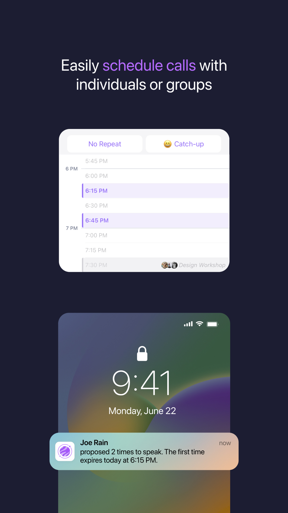 Protect your Time: Orbit is not your average scheduler. Most schedulers are designed where anyone can book out times from your calendar as long as they have the scheduling link. On Orbit, only your friends on the app can propose times to chat with you, while you get to pick a time from the selection and confirm it before the call is officially scheduled. Users are also encouraged to add a short call description or theme to let the recipient know the general purpose of the call beforehand, so they can show up prepared.