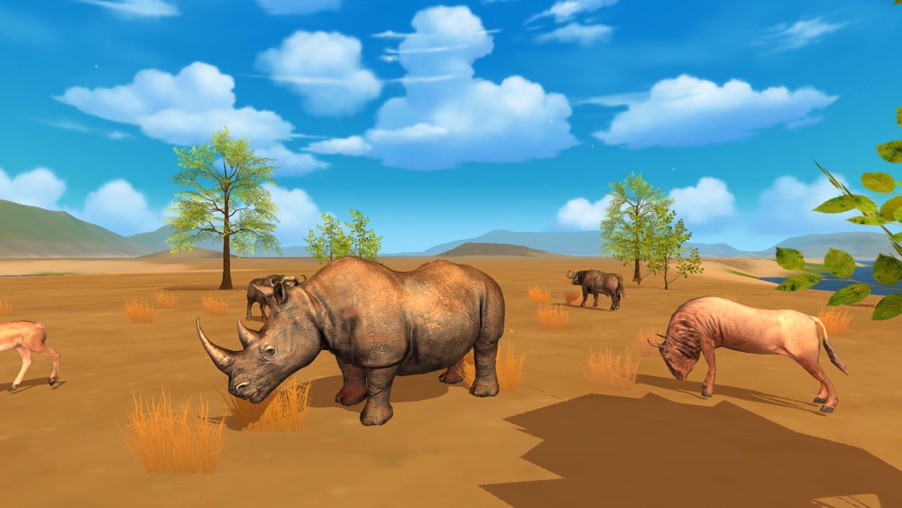 Ultimate Red Rhino is a life simulation game of rhinos living in Africa jungle , Your are part of a rhino family where you have to control Big mama rhino and help her to bring up her little kid , guide her through the jungle to feed fresh grass to her kid , Water is an initial need of all animals , you have to find water in that area keep in mind you have to avoid enemies !!!