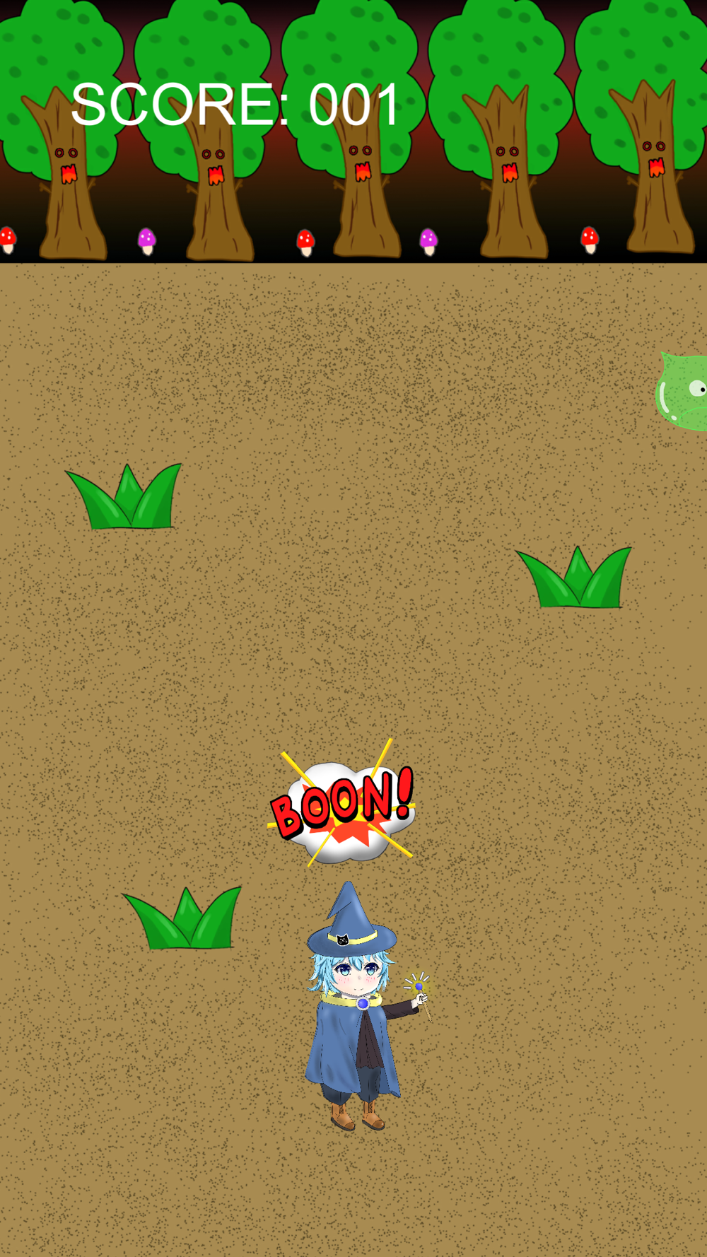 画面を引っ張って、スライムたちを狙おう。君は何匹倒せるかな。