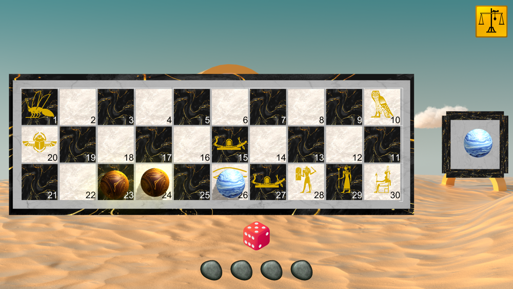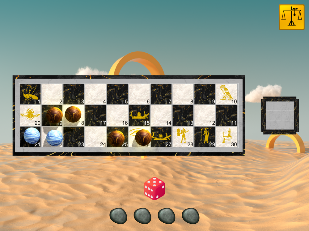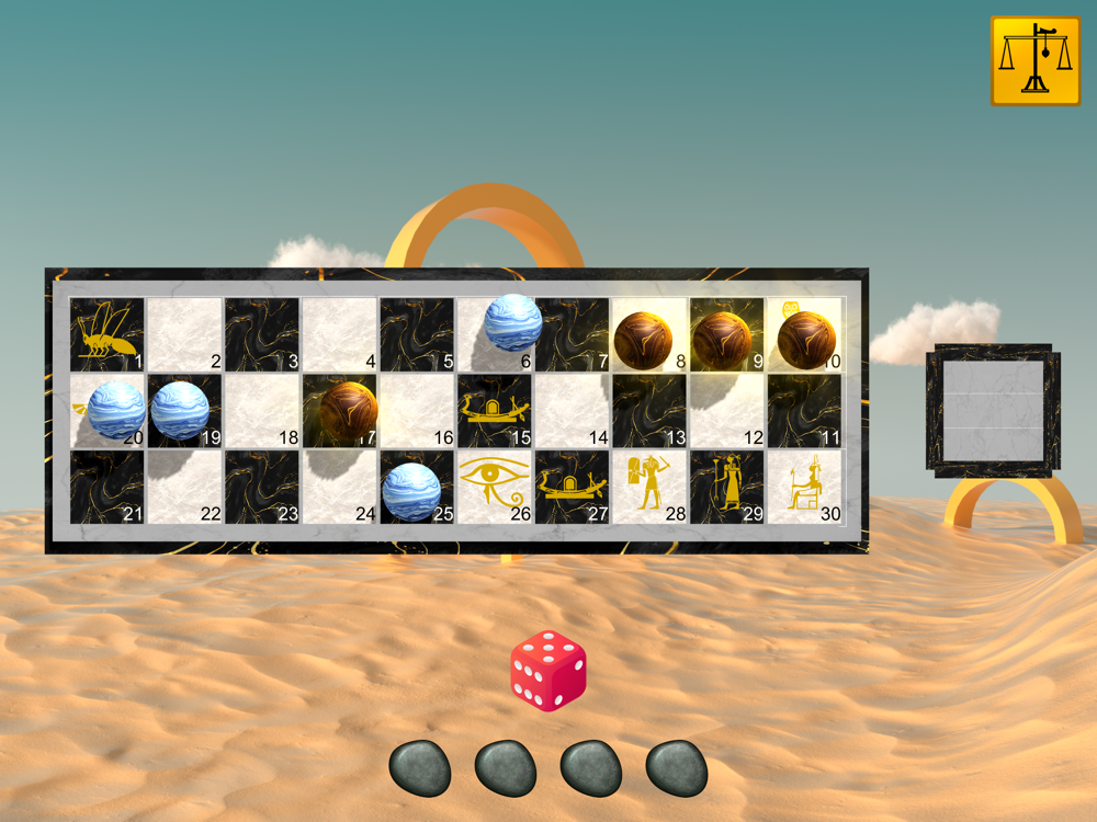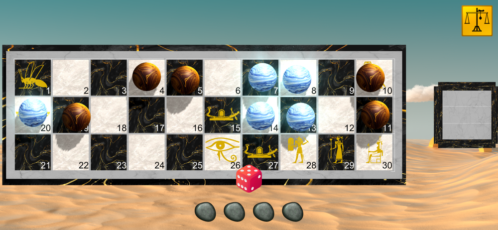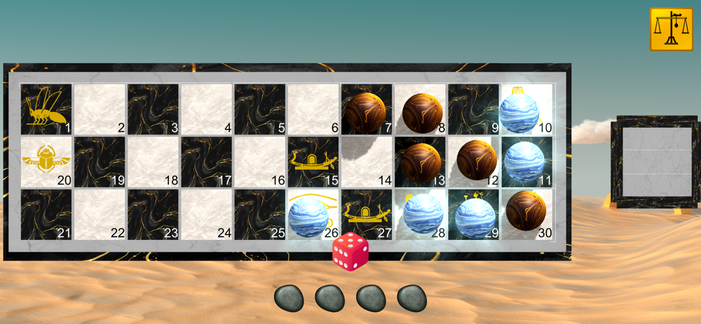 The order of the squares is from 1 to 10 from left to right in the first row, from 11 to 20 from right to left in the second row and from 21 to 30 from left to right in the third row, this being the direction that they must follow the pieces of the two players when advancing, leaving their 10 pieces of the first row placed alternately and occupying this completely and part of the second in the 14-piece mode. There are several special boxes that are 15, 26, 27, 28, 29 and 30.