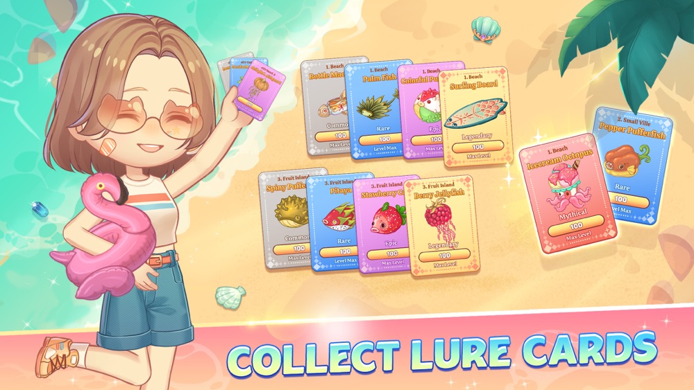 To catch bigger fish, you need to collect and upgrade the lure card. The bigger they are, the bigger the chance to win the battle against other anglers.